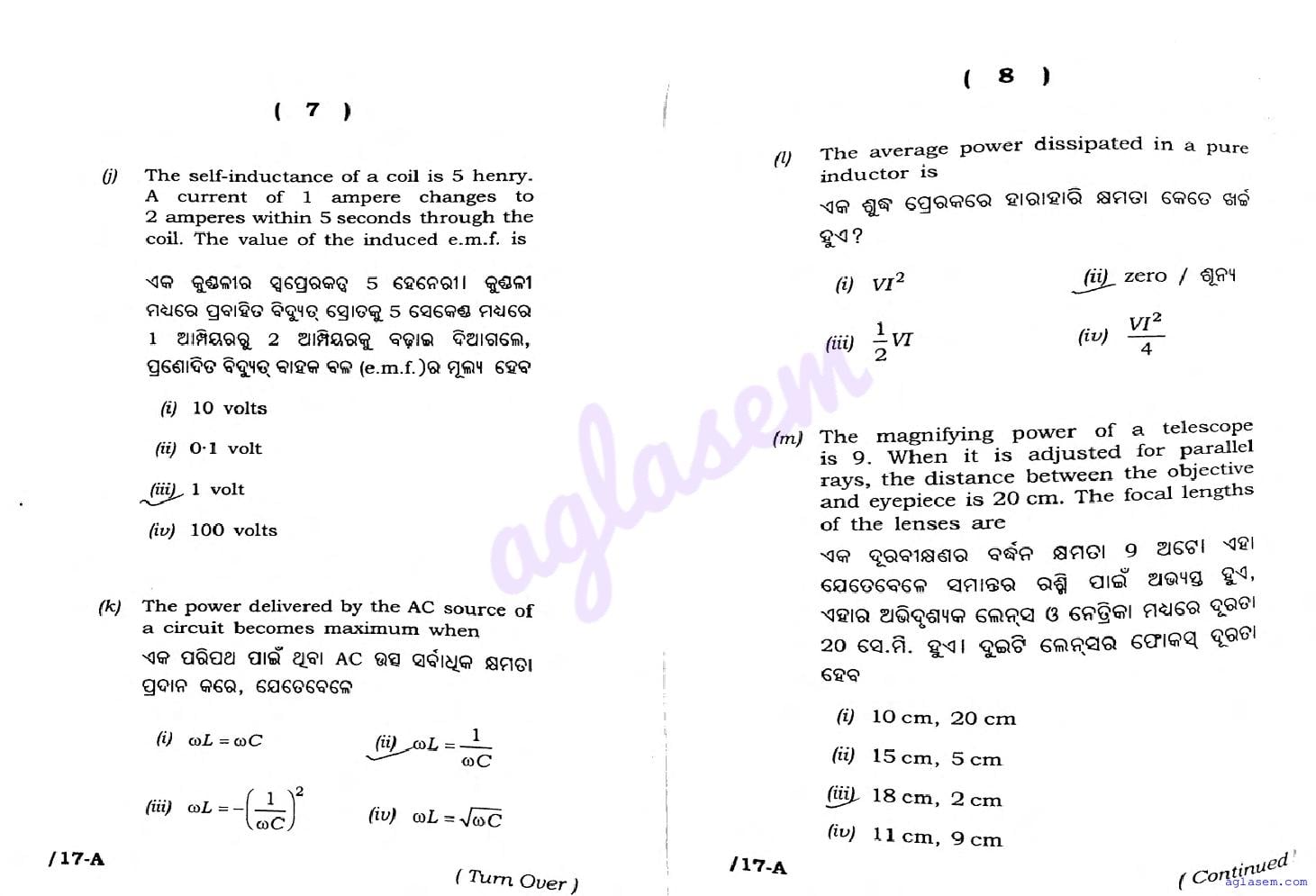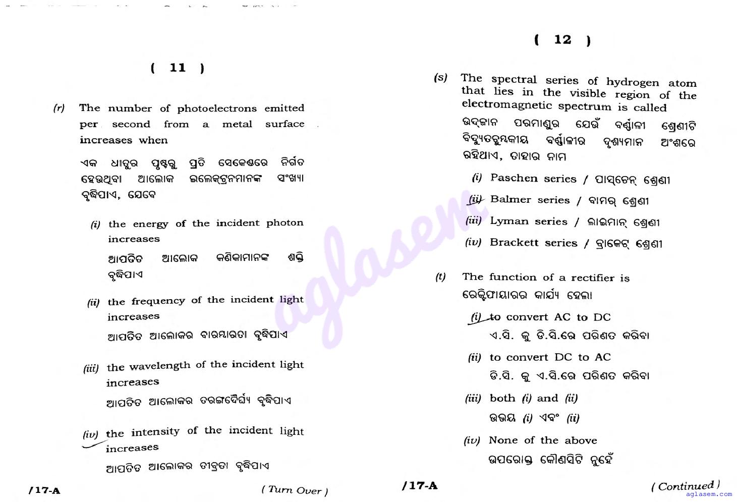 Odisha CHSE Class 12 Physics Question Paper 2026 has been published here at aglasem. You can now download the 12 Physics Question Paper PDF to prepare for your exam. This Odisha 12 Question Paper contains actual questions asked in Physics test in previous year class 12 exams. Therefore it is a very useful study material for Physics subject which helps you score full marks in 12 exams.