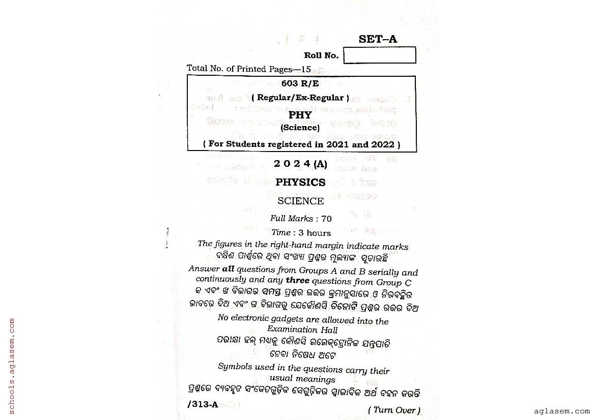 Odisha CHSE Class 12 Physics Question Paper 2024 has been published here at aglasem. You can now download the 12 Physics Question Paper PDF to prepare for your exam. This Odisha 12 Question Paper contains actual questions asked in Physics test in previous year class 12 exams. Therefore it is a very useful study material for Physics subject which helps you score full marks in 12 exams.