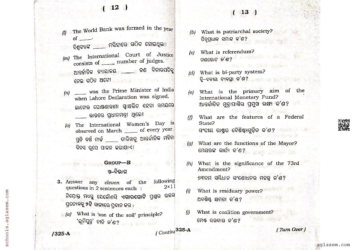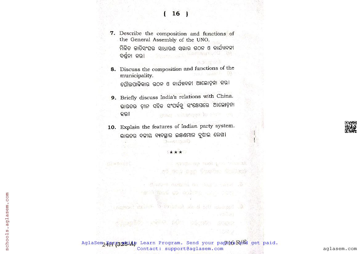 Odisha CHSE Class 12 Political Science Question Paper 2024 has been published here at aglasem. You can now download the 12 Political Science Question Paper PDF to prepare for your exam. This Odisha 12 Question Paper contains actual questions asked in Political Science test in previous year class 12 exams. Therefore it is a very useful study material for Political Science subject which helps you score full marks in 12 exams.