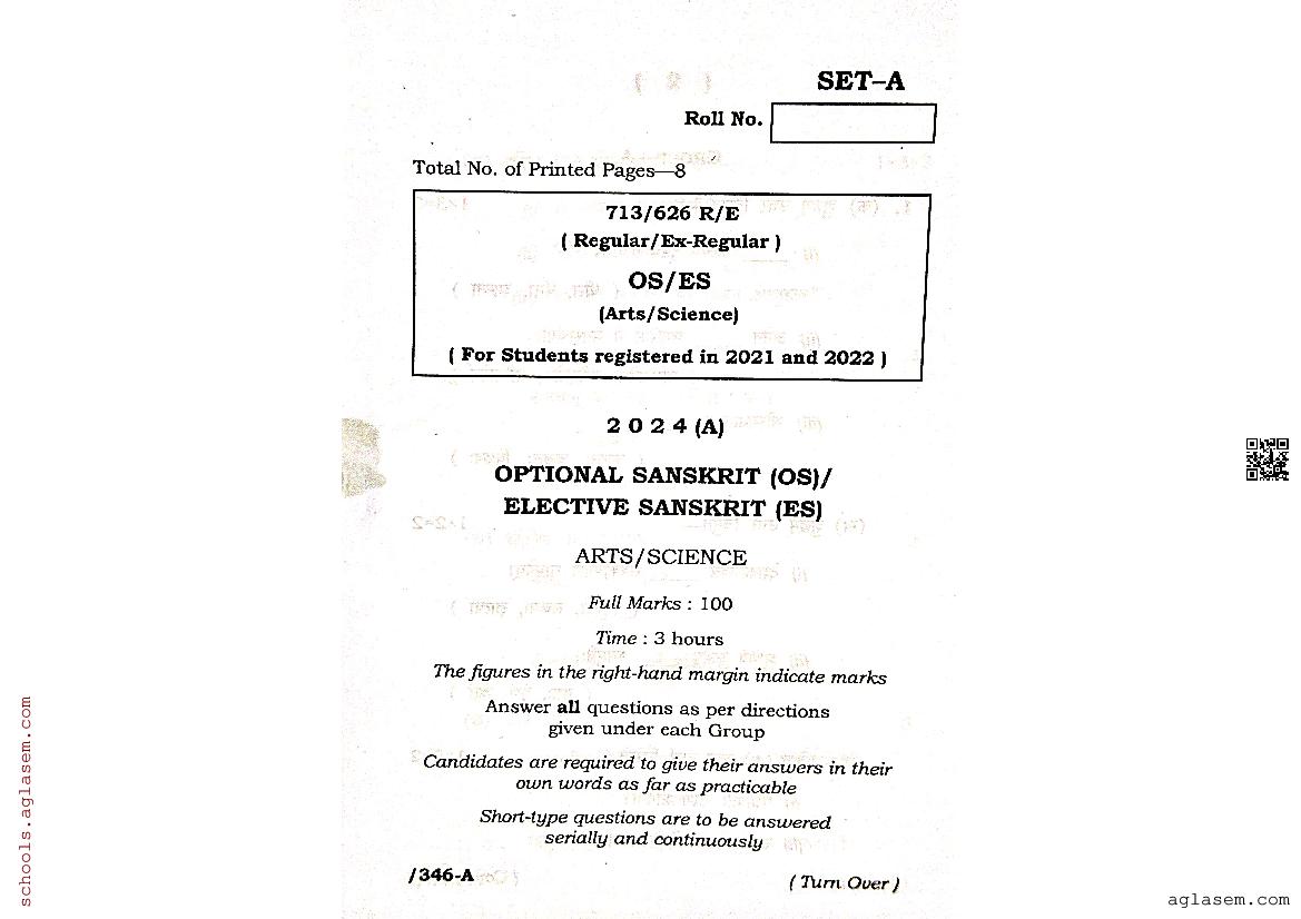 Odisha CHSE Class 12 Sanskrit Optional Question Paper 2024 has been published here at aglasem. You can now download the 12 Sanskrit Optional Question Paper PDF to prepare for your exam. This Odisha 12 Question Paper contains actual questions asked in Sanskrit Optional test in previous year class 12 exams. Therefore it is a very useful study material for Sanskrit Optional subject which helps you score full marks in 12 exams.