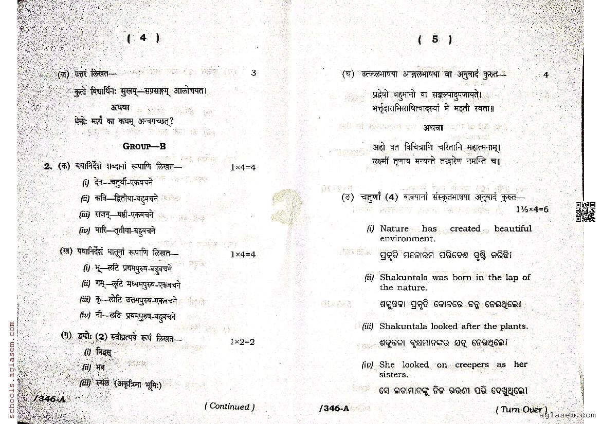 Odisha Class 12 Question Paper 2024 Sanskrit Optional View Download