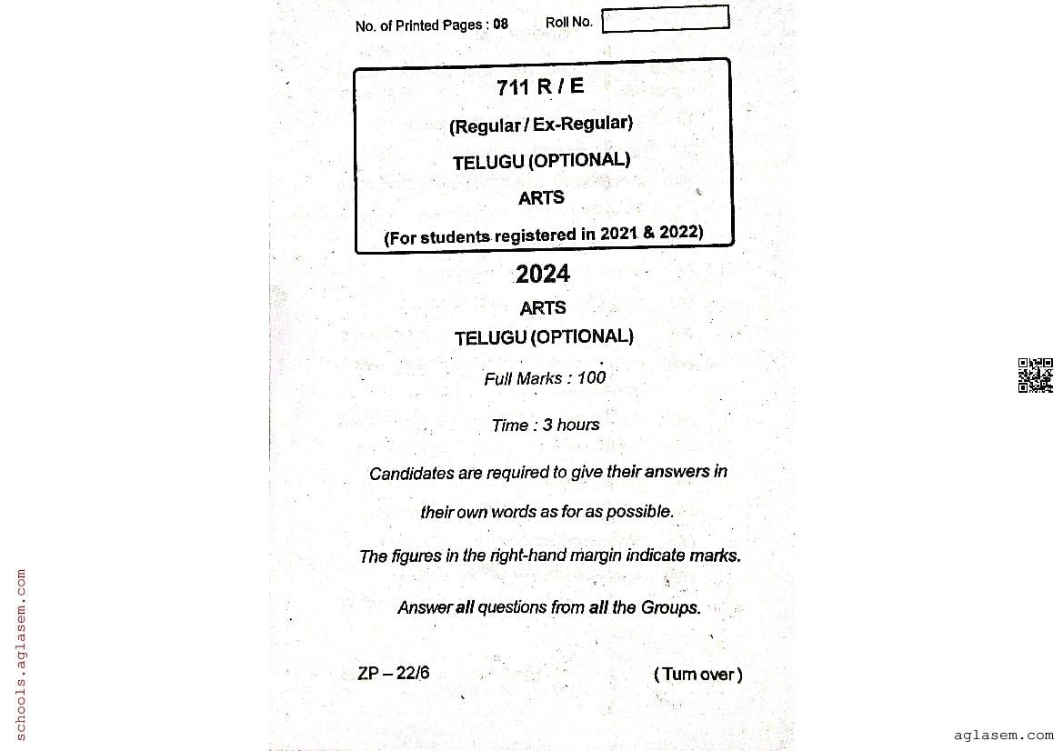 Odisha CHSE Class 12 Telugu Optional Question Paper 2024 has been published here at aglasem. You can now download the 12 Telugu Optional Question Paper PDF to prepare for your exam. This Odisha 12 Question Paper contains actual questions asked in Telugu Optional test in previous year class 12 exams. Therefore it is a very useful study material for Telugu Optional subject which helps you score full marks in 12 exams.
