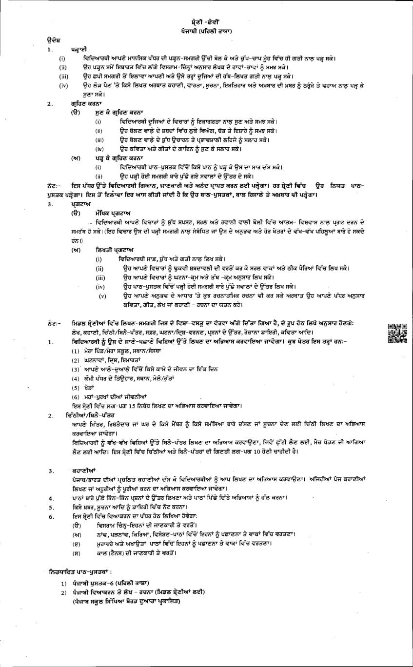 You can check the Punjab Board syllabus for all classes, in addition to Punjabi First Language curriculum of this page, as follows.