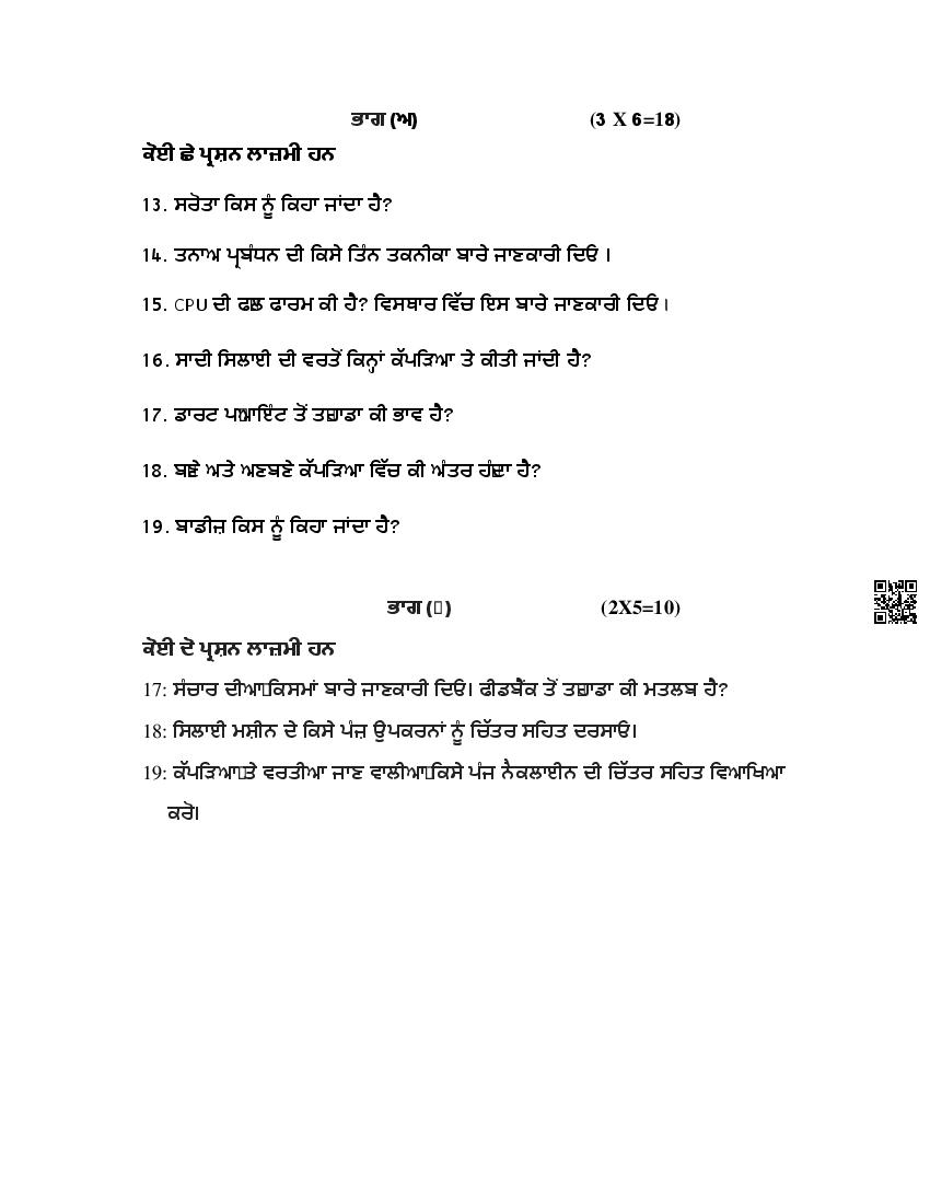 PSEB 10th Sample Paper 2026 Apparel, Made-Ups and Home Furnishing View Download