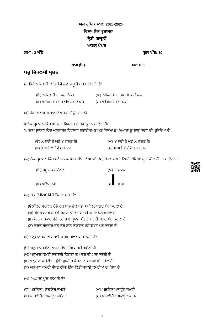 If you have any queries on PSEB 12th Public Administration Sample Paper 2026, then please ask in comments below.