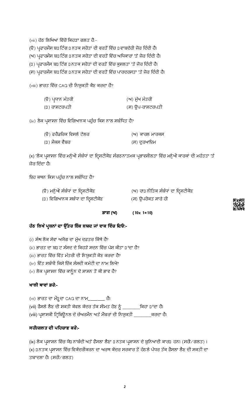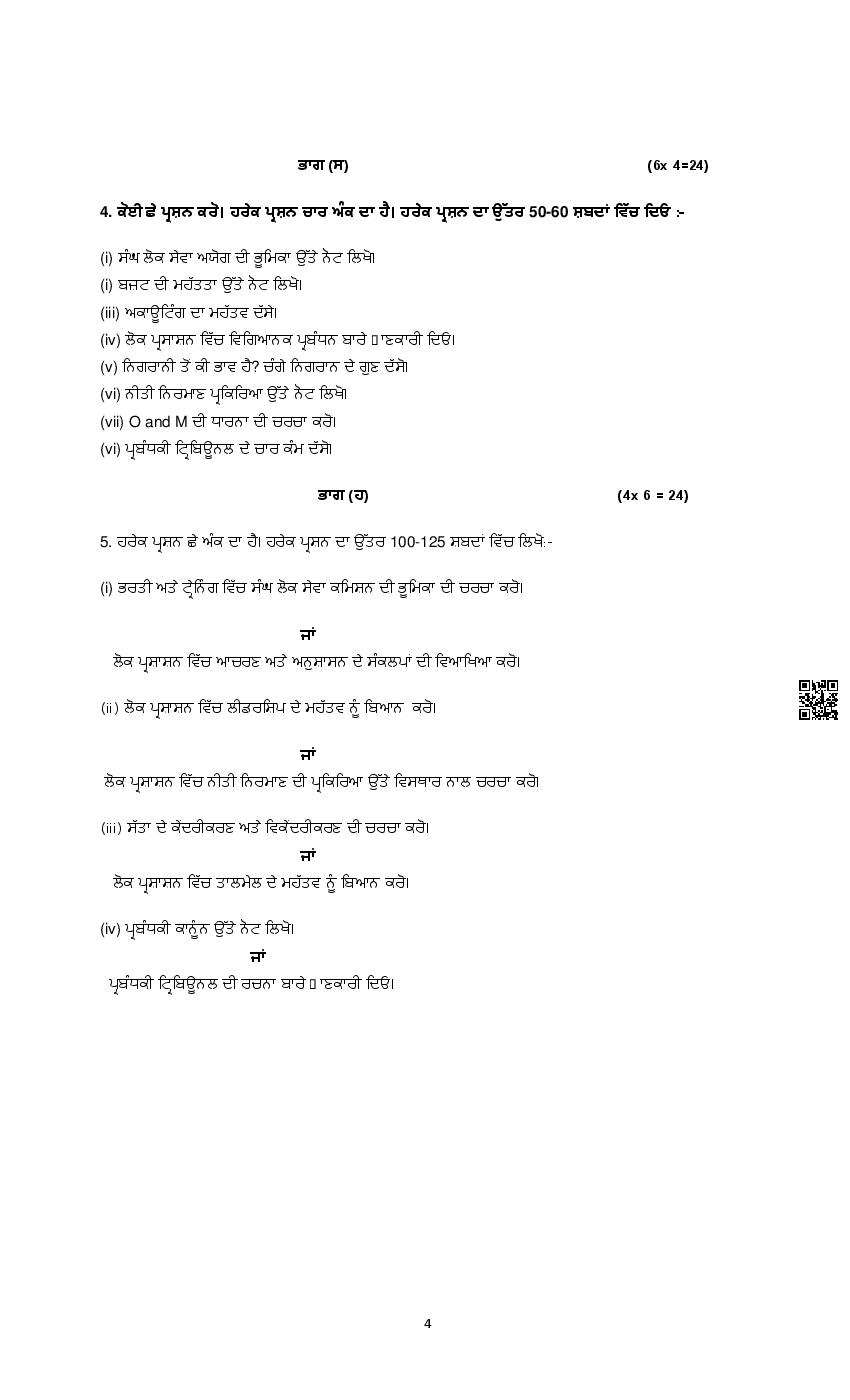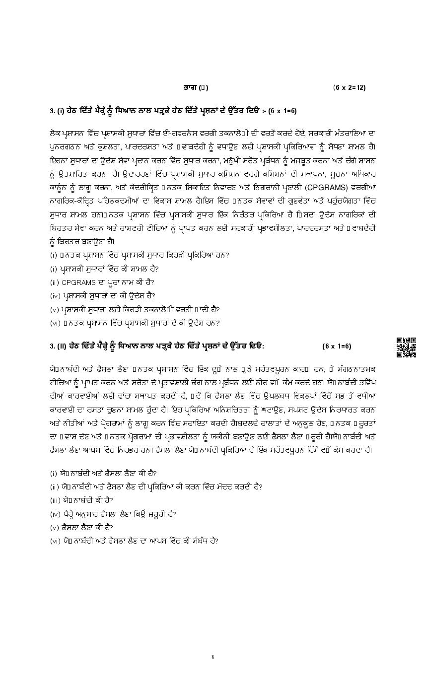 The Punjab Board Class 12 Model Paper for Public Administration is the sample paper with specimen questions from latest PSEB syllabus. Moreover the exam pattern in Public Administration sample paper is same as actual board exam. Therefore the Public Administration model question paper helps you prepare for 12th class Punjab board exams.