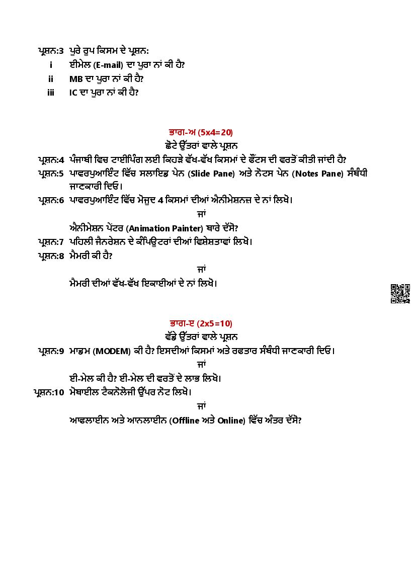 - Thereafter that you can use Punjab Board Class 8th model paper for Computer Science here at aglasem to prepare for the exams.