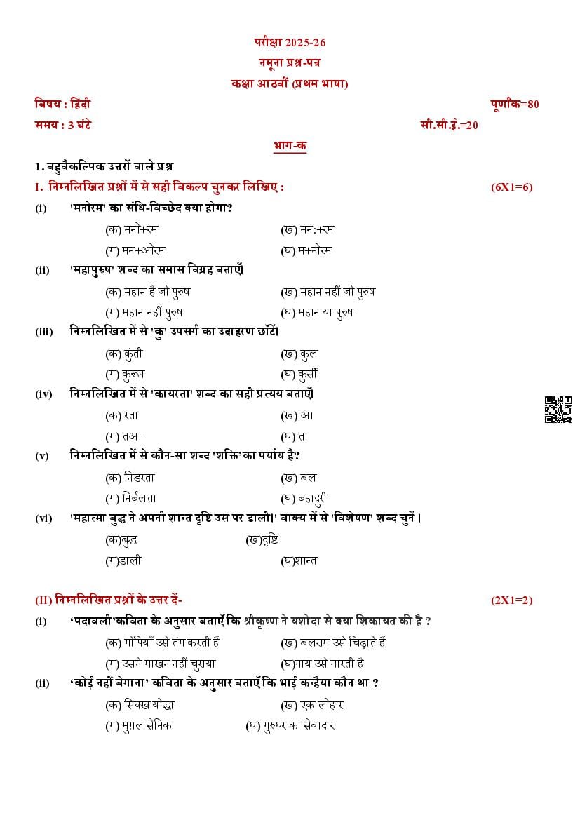 If you have any queries on PSEB 8th Hindi 1st Language Sample Paper 2026, then please ask in comments below.