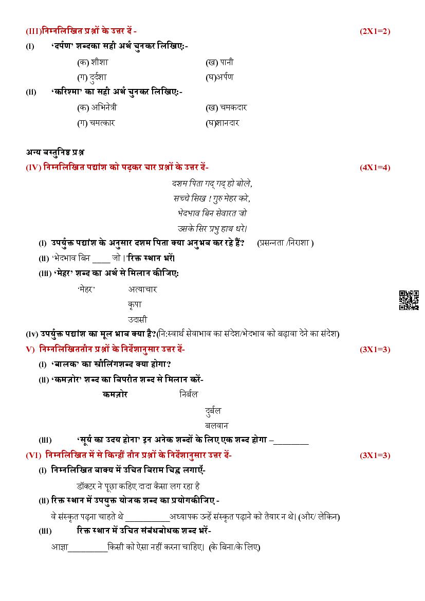 The Punjab Board Class 8 Model Paper for Hindi 1st Language is the sample paper with specimen questions from latest PSEB syllabus. Moreover the exam pattern in Hindi 1st Language sample paper is same as actual board exam. Therefore the Hindi 1st Language model question paper helps you prepare for 8th class Punjab board exams.
