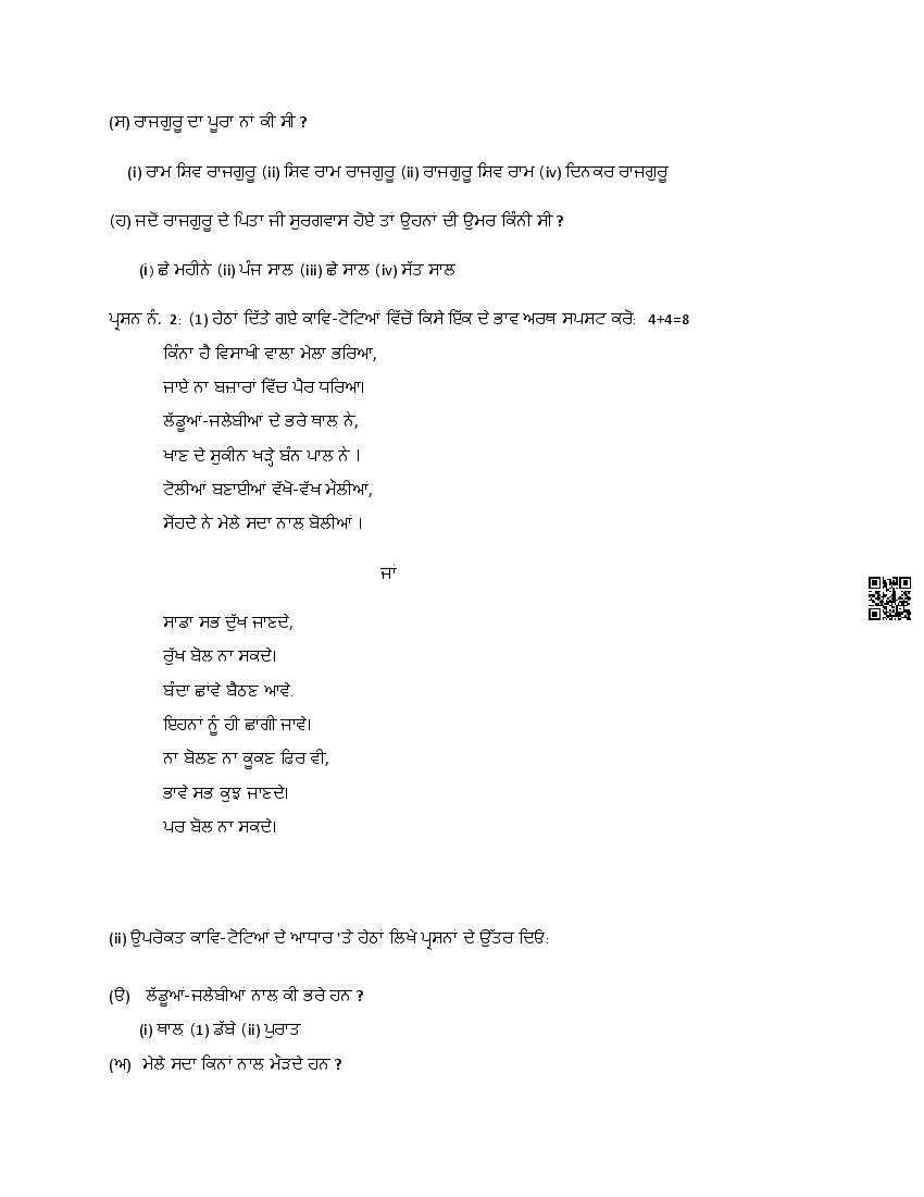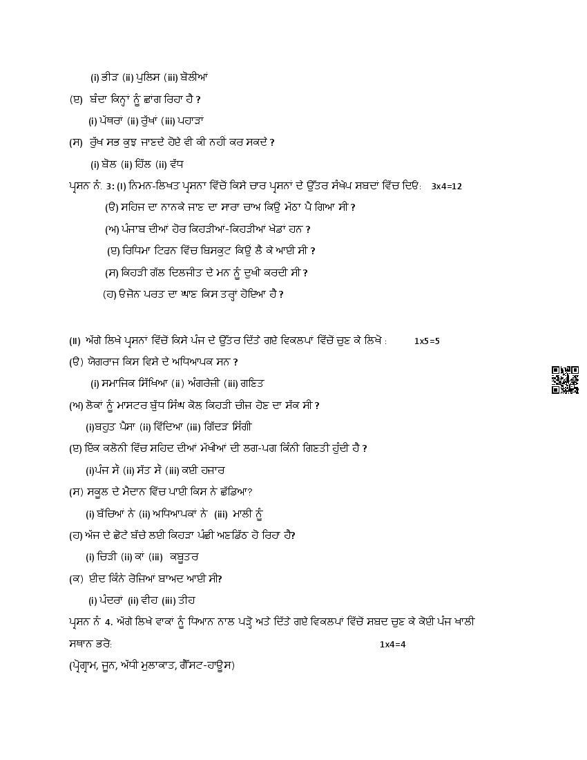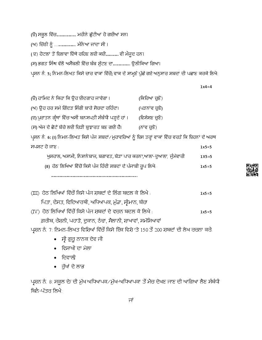 The Punjab Board Class 8 Model Paper for Punjabi 2nd Language is the sample paper with specimen questions from latest PSEB syllabus. Moreover the exam pattern in Punjabi 2nd Language sample paper is same as actual board exam. Therefore the Punjabi 2nd Language model question paper helps you prepare for 8th class Punjab board exams.
