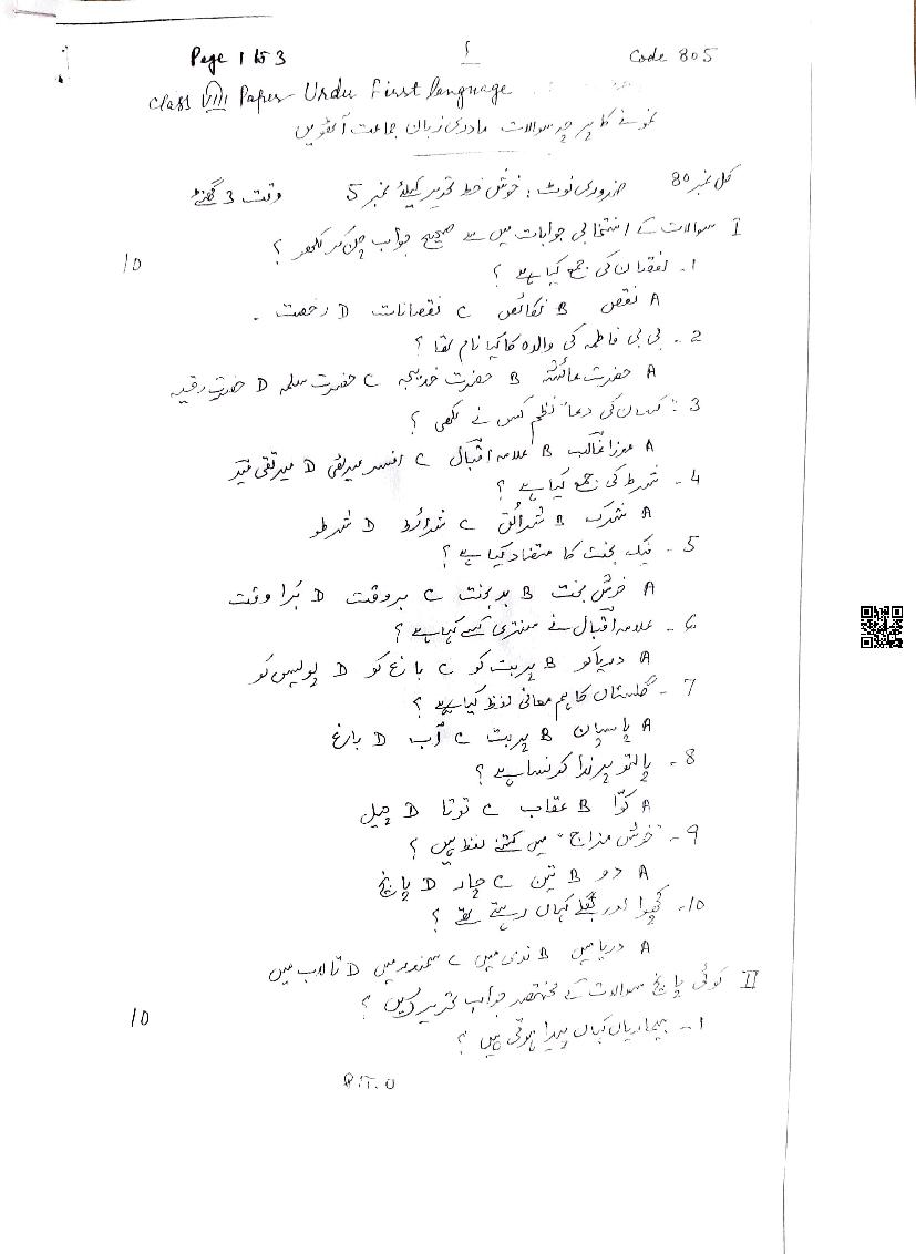 - Thereafter that you can use Punjab Board Class 8th model paper for Urdu First Language here at aglasem to prepare for the exams.