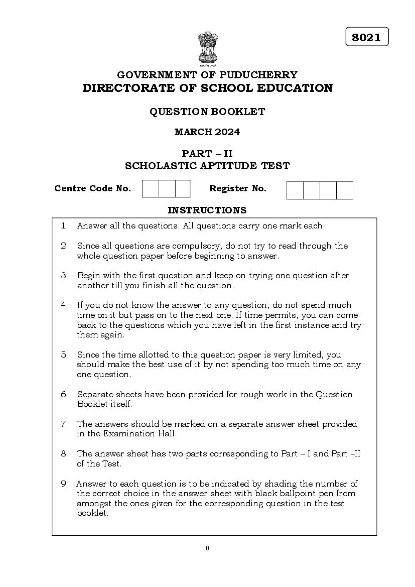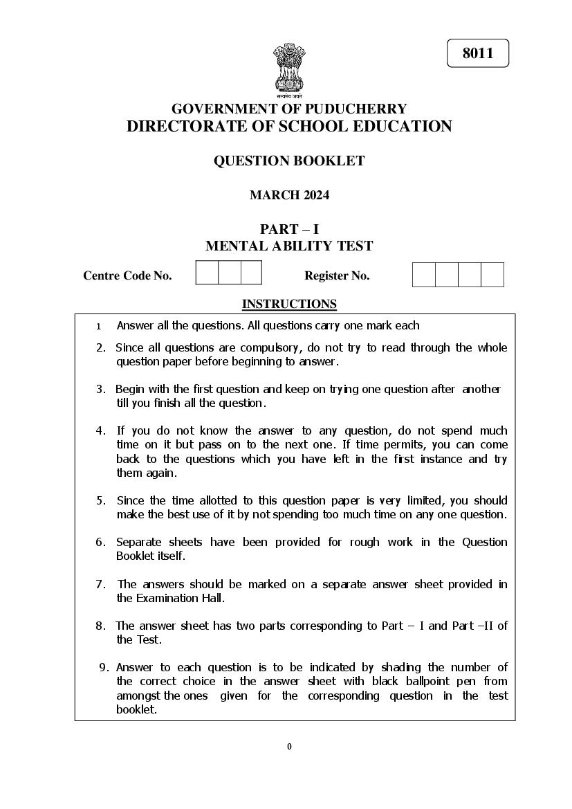Puducherry NMMS 2023 Question Paper PDF Download Link – Click Here to Download Question Paper PDF