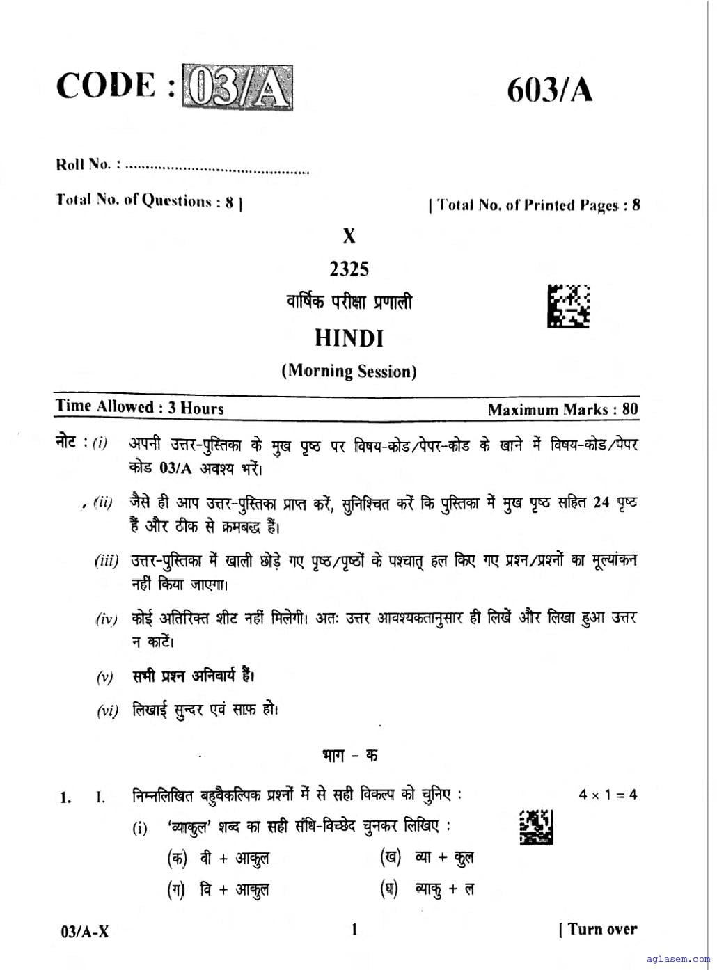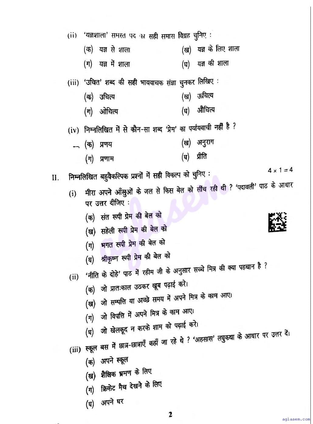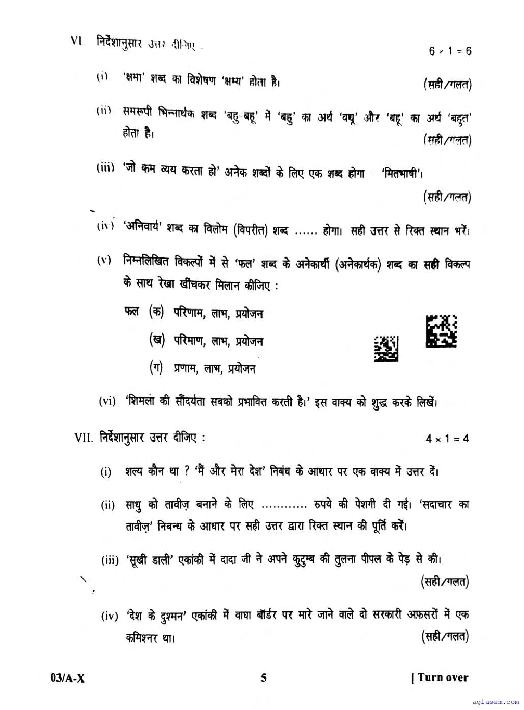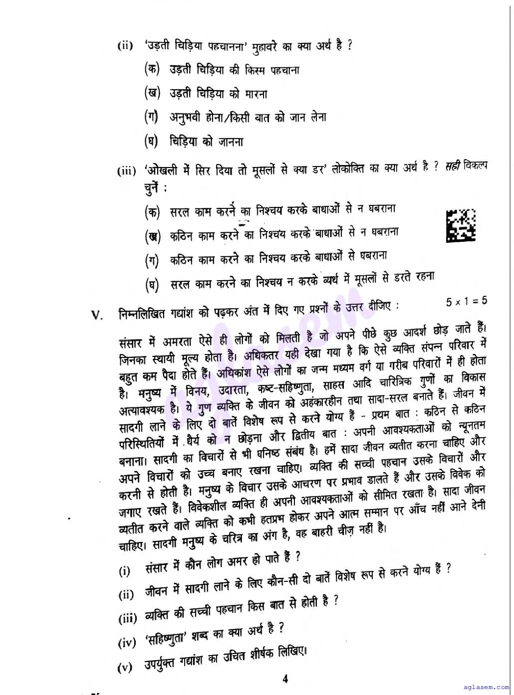 You can check the latest available final exam Hindi question paper below-