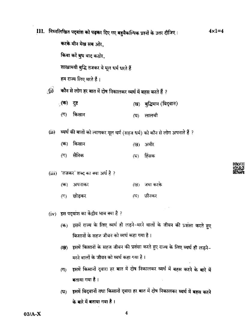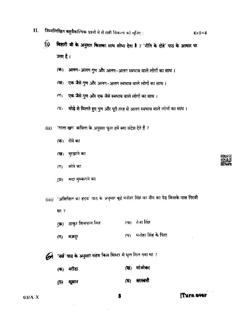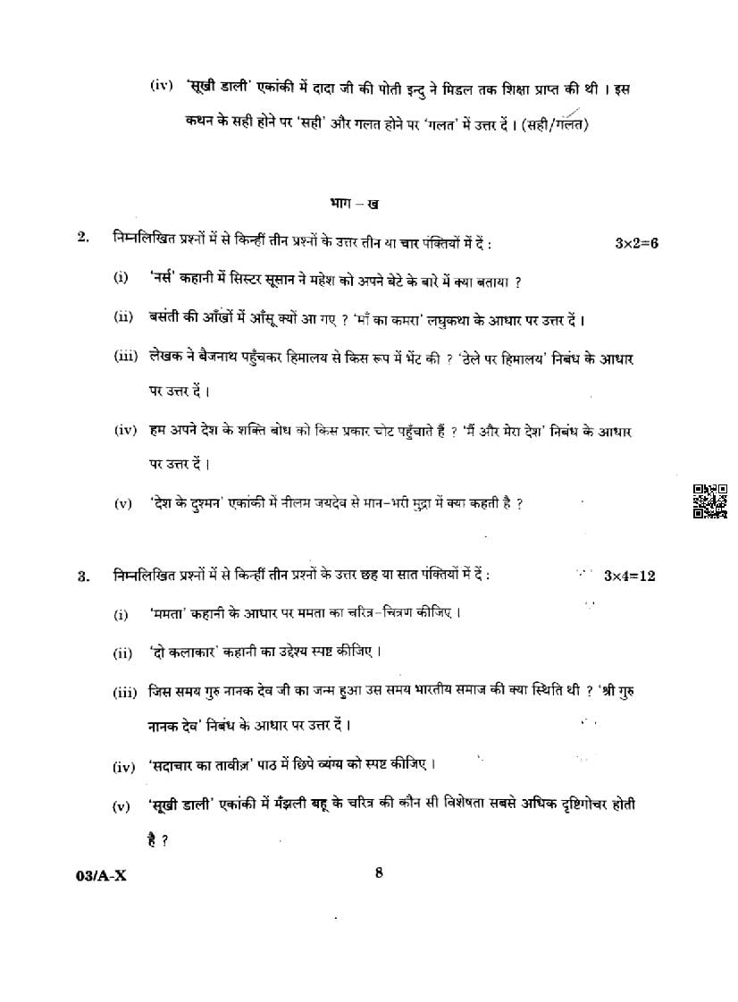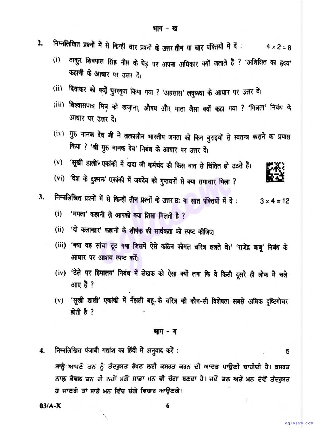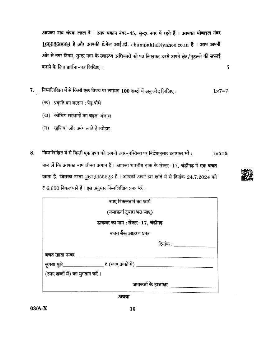 | Study Material Here | Punjab Board Previous Year Question Paper of Class 10 Hindi |