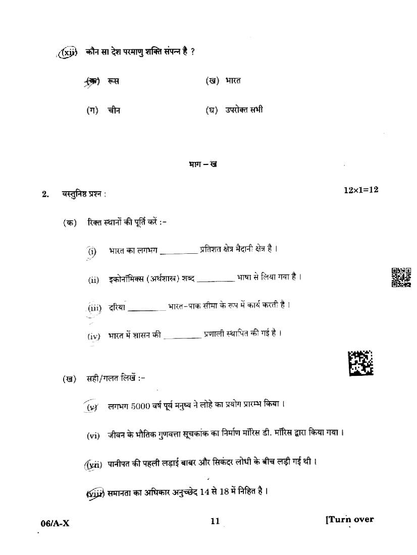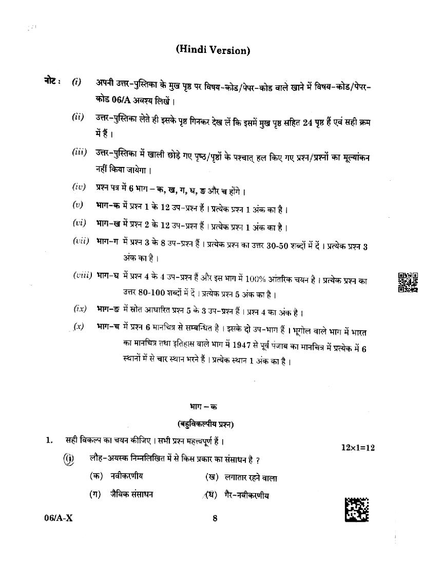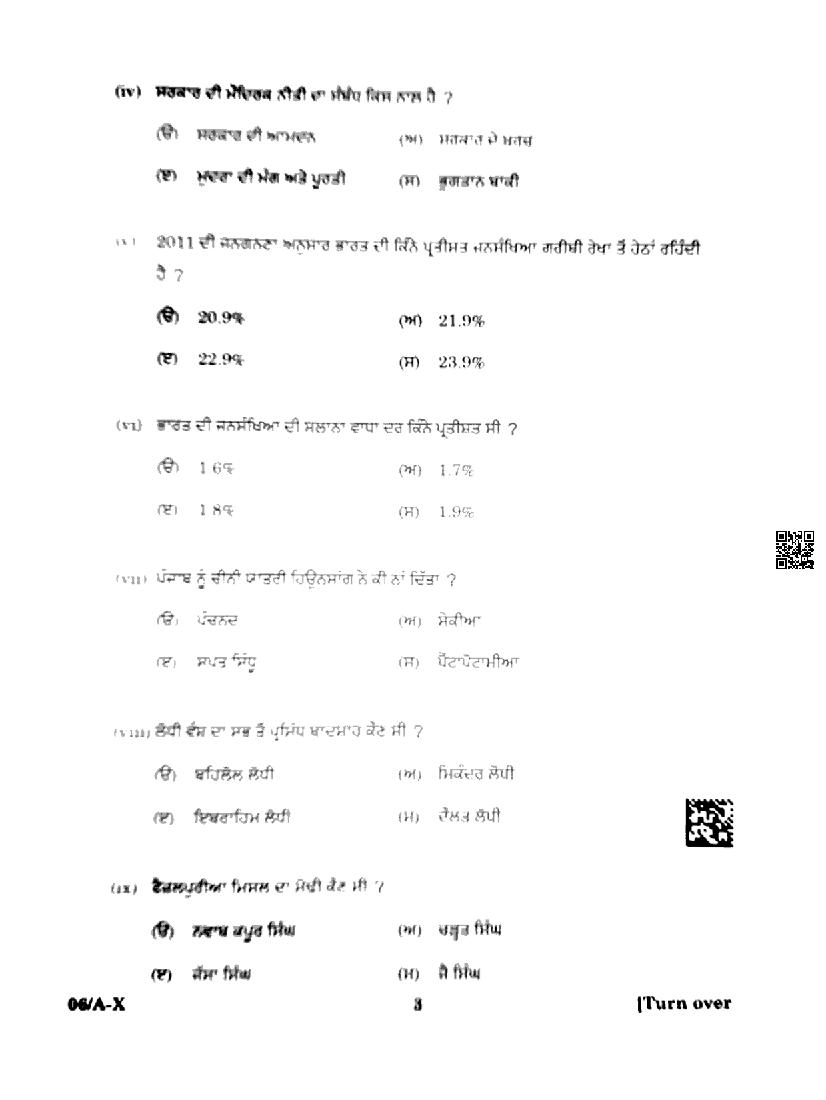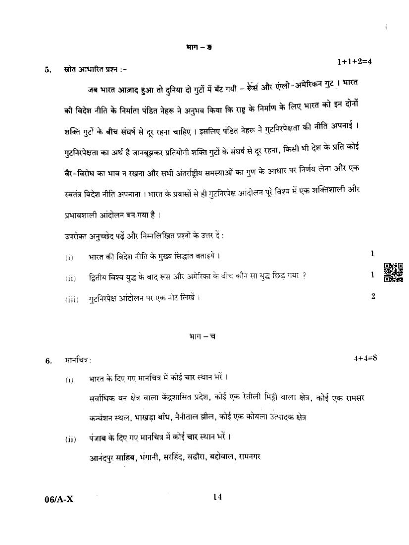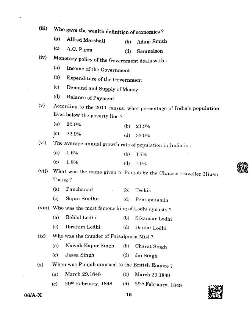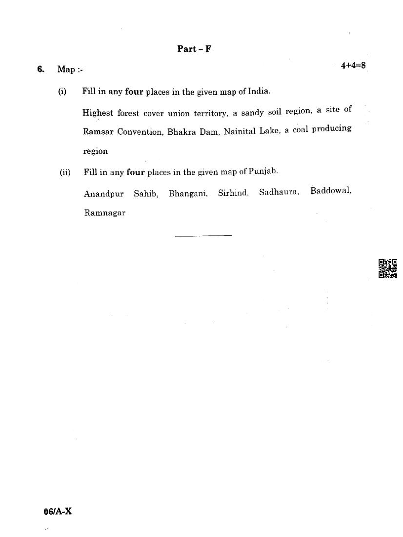 Punjab Board Class 10 Social Science Question Paper 2024