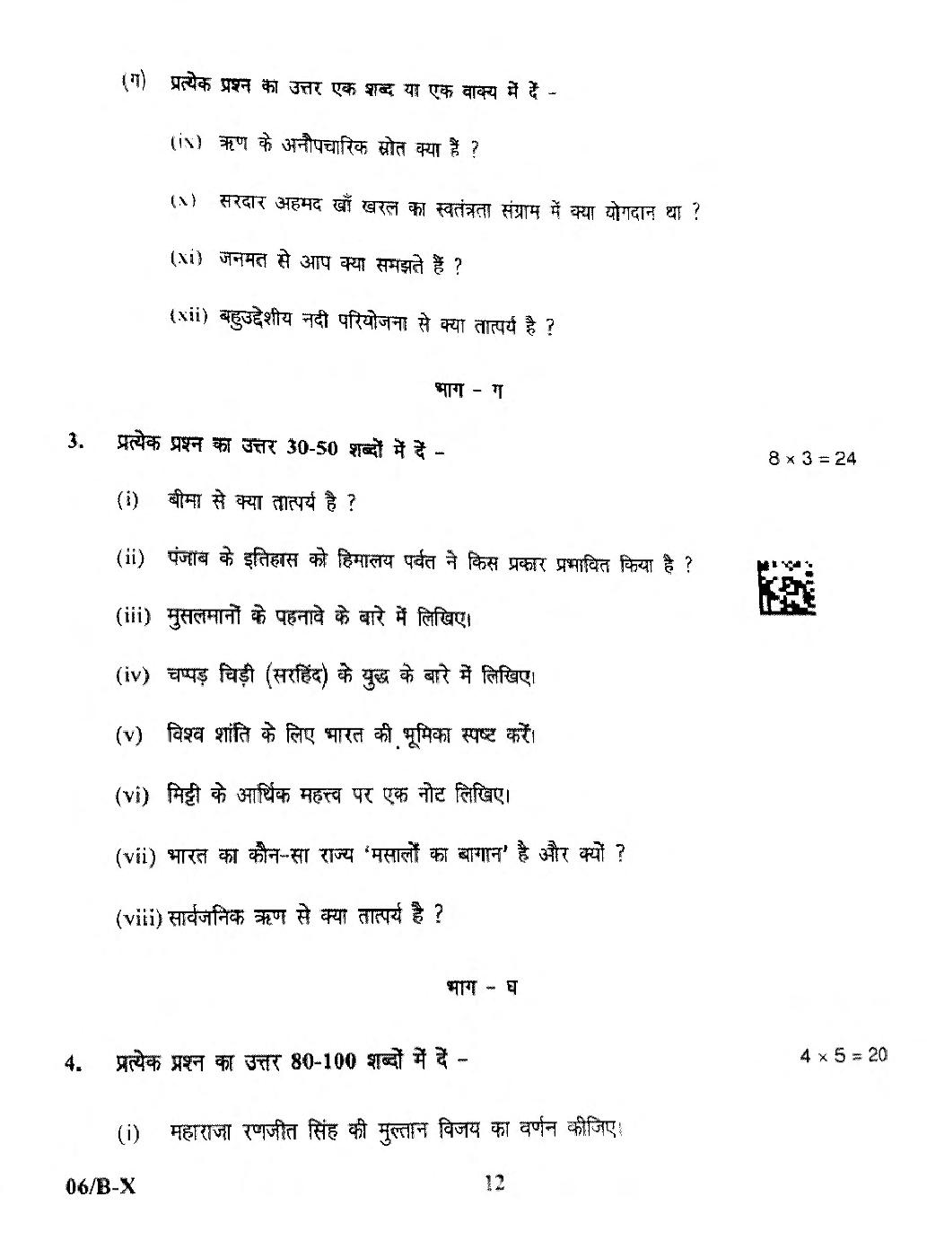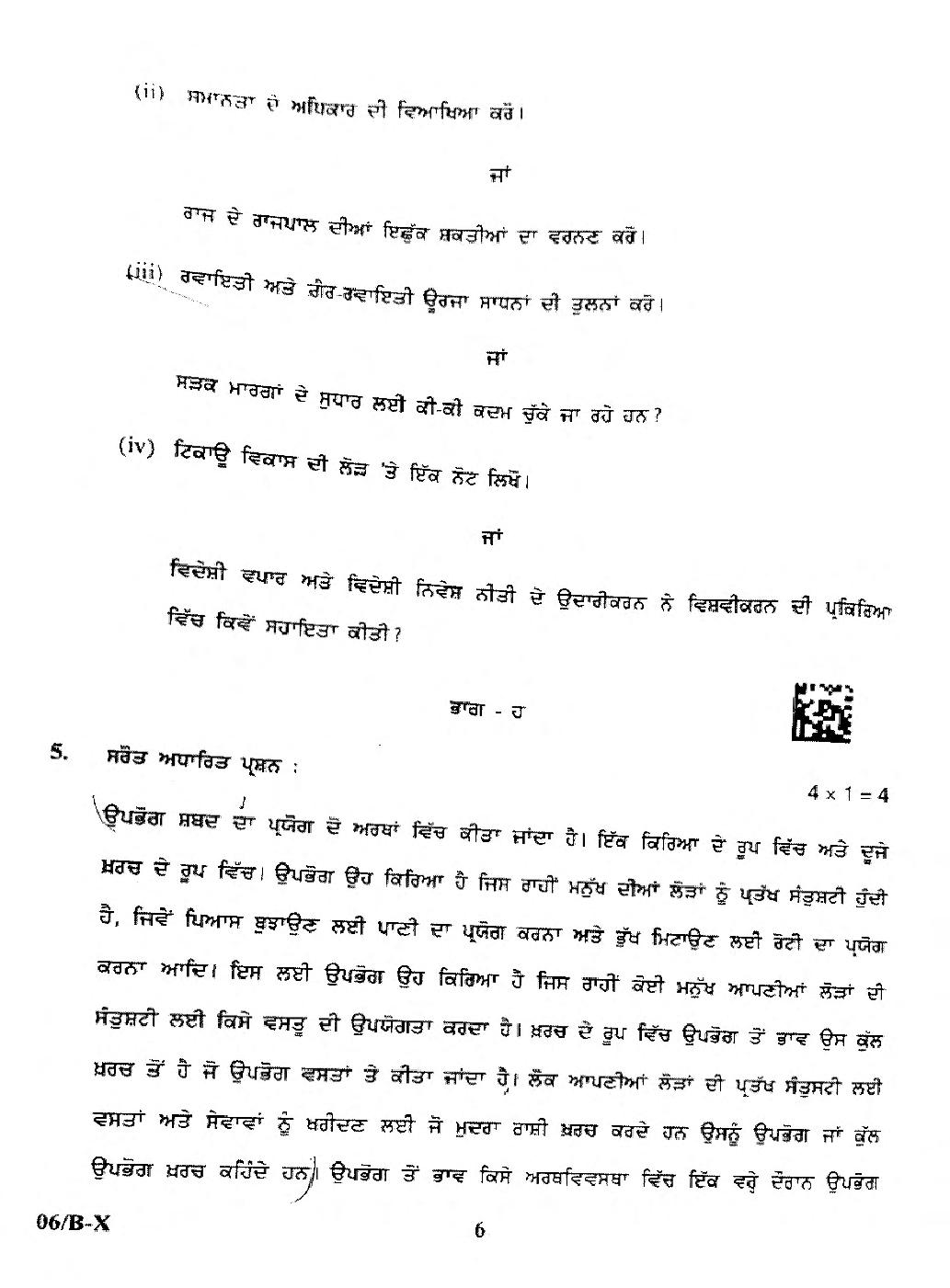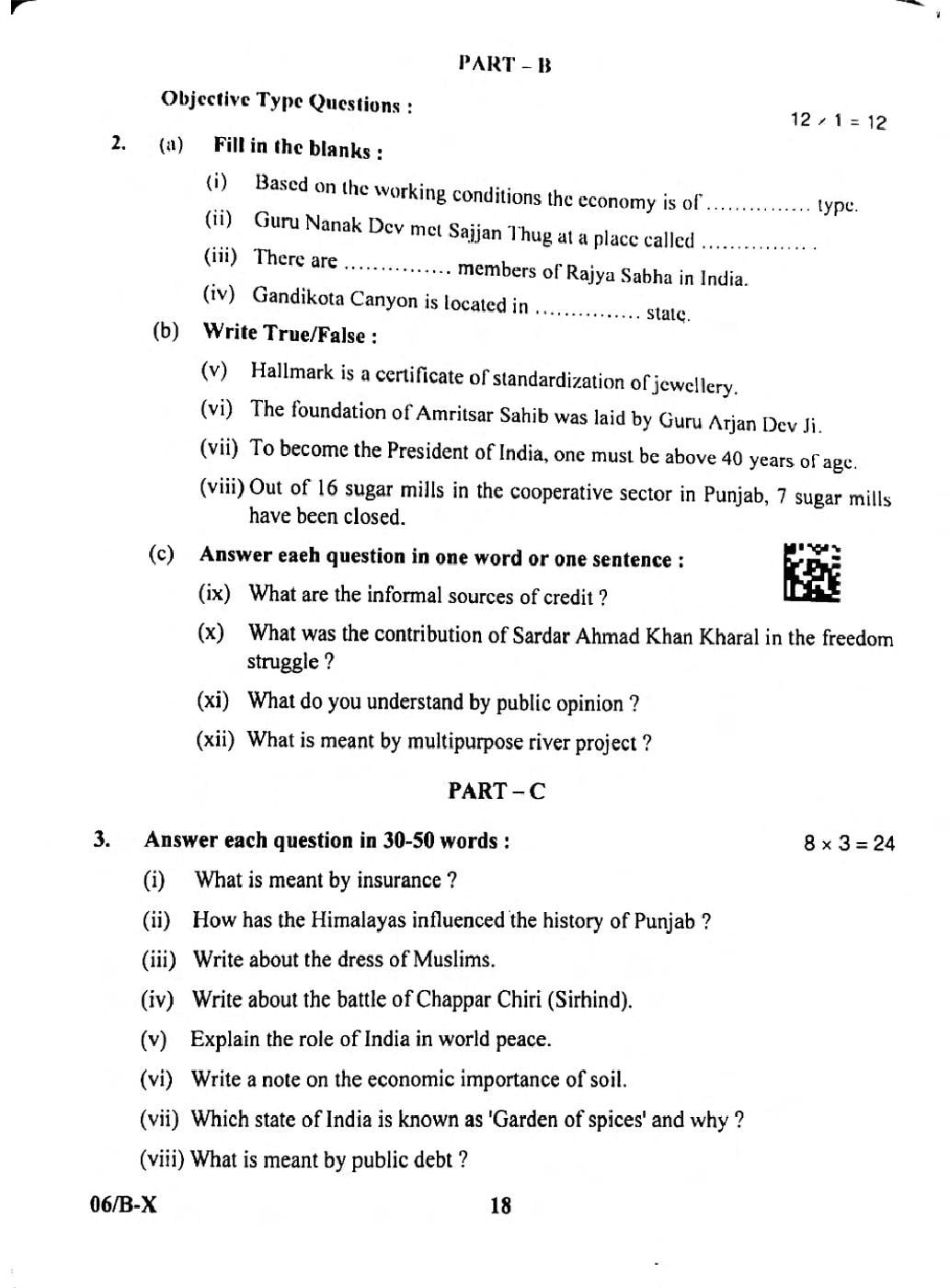 | Study Material Here | Punjab Board Previous Year Question Paper of Class 10 Social Science |