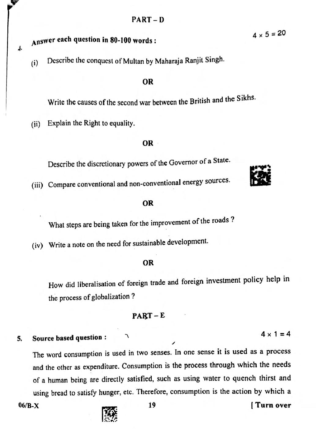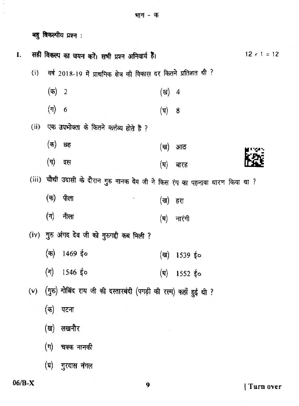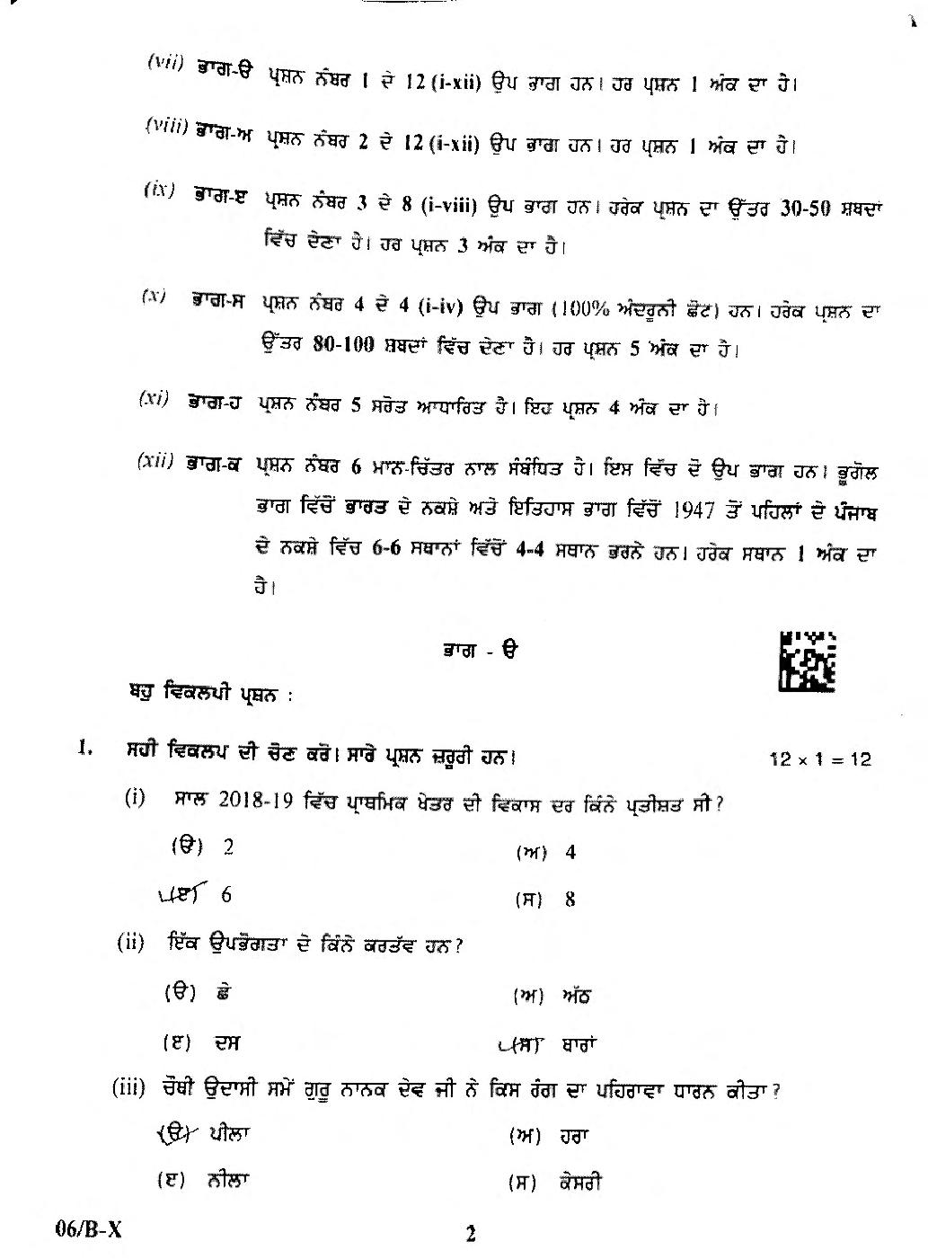 | Study Material Here | Punjab Board Previous Year Question Paper of Class 10 Social Science |
