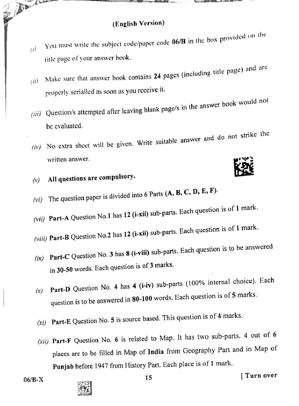 PSEB Class 10 Social Science Question Paper 2024 PDF – Click Here to Download Question Paper PDF