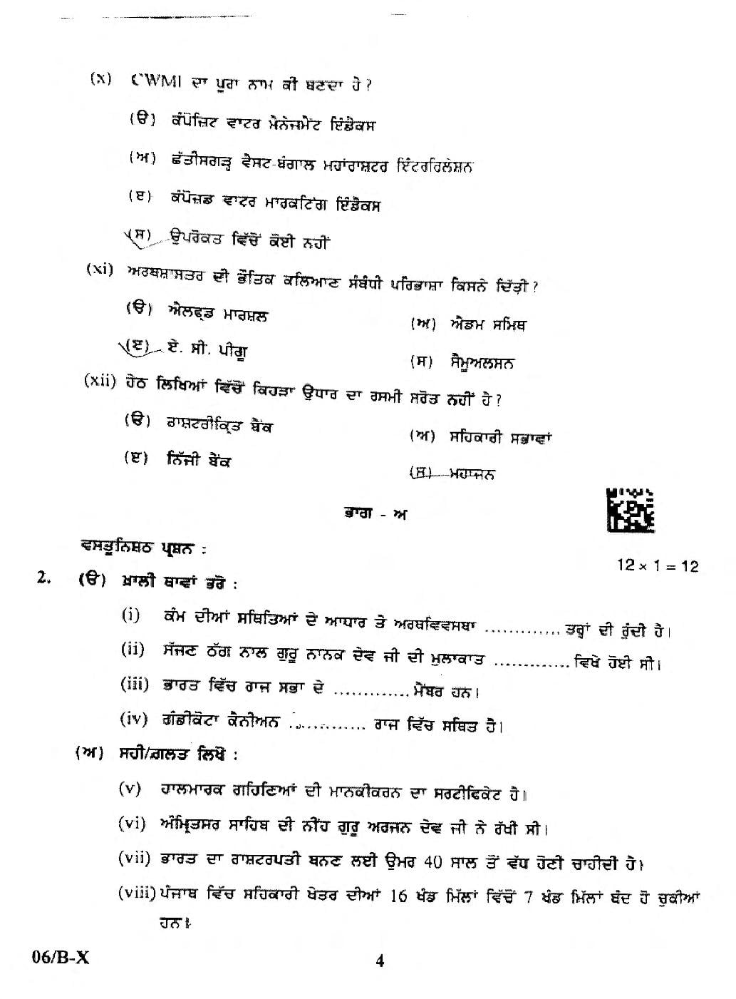 - Punjab Board Class 12 Question Papers