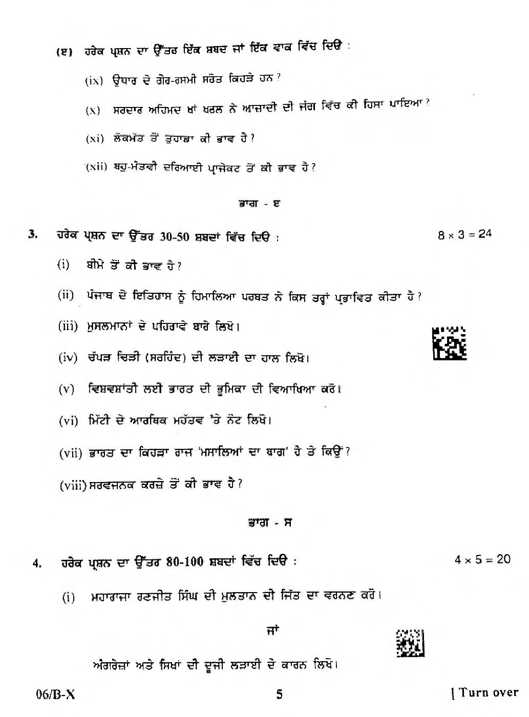 - Punjab Board Class 10 Question Papers