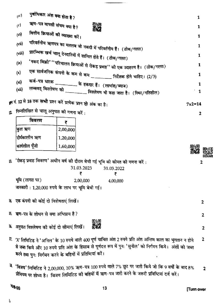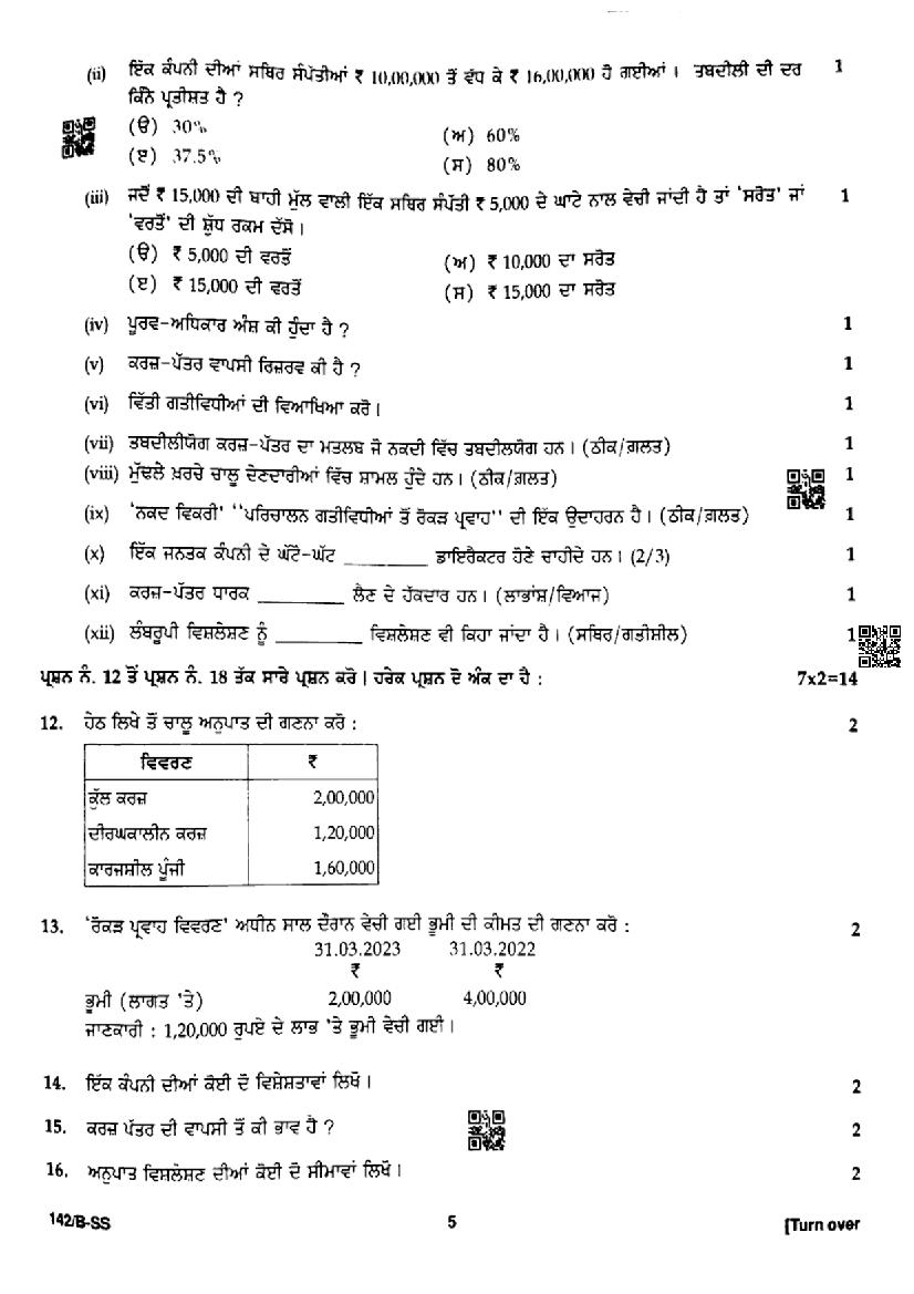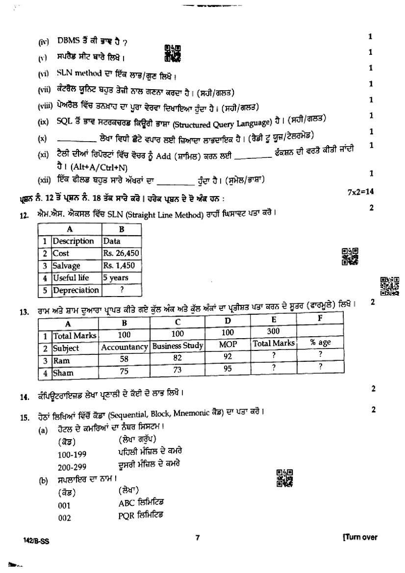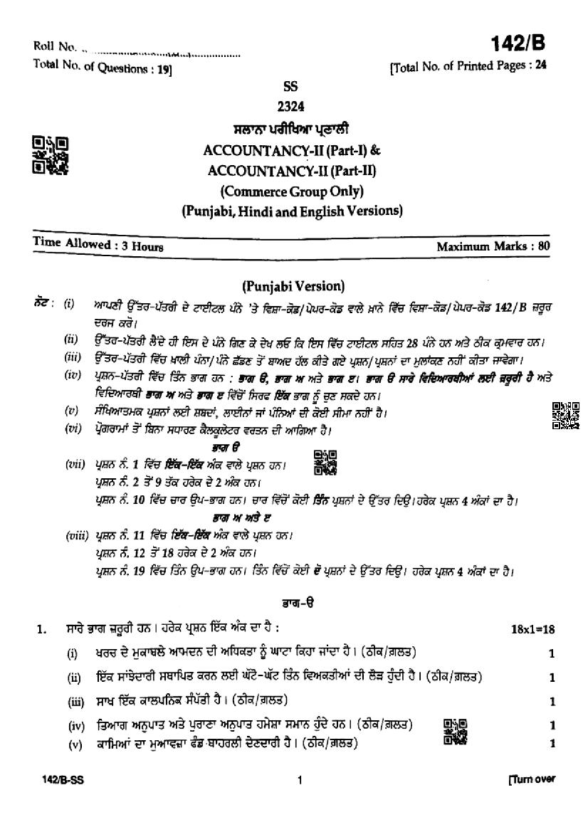 Punjab Board Class 12 Question Paper 2024 Accountancy View Download