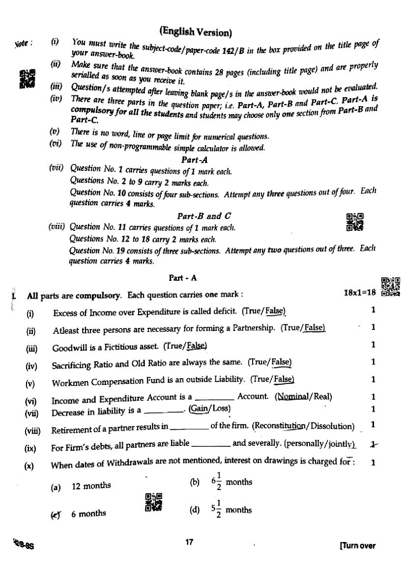 | Study Material Here | Punjab Board Previous Year Question Paper of Class 12 Accountancy |
