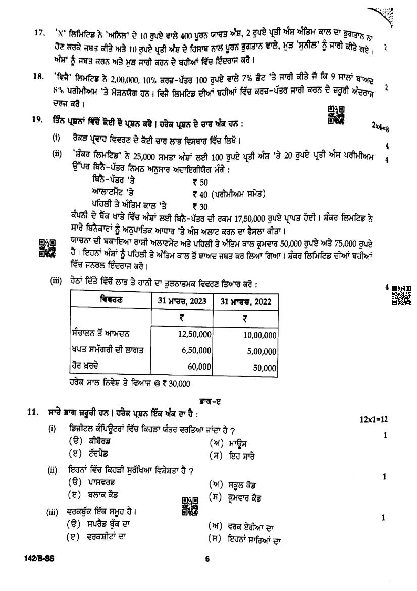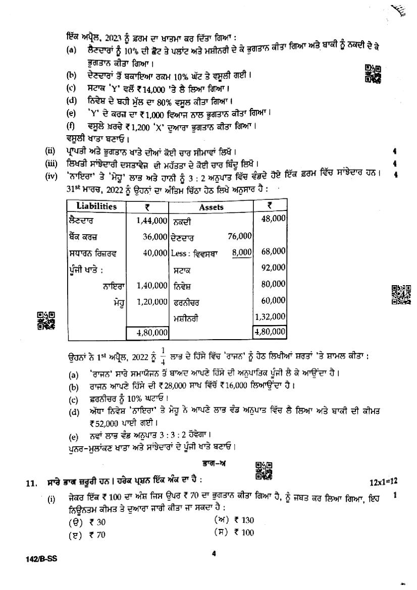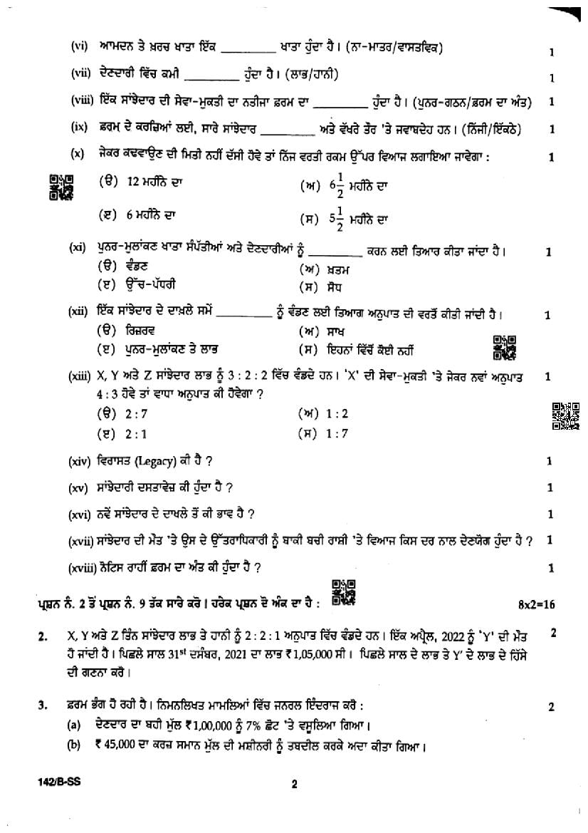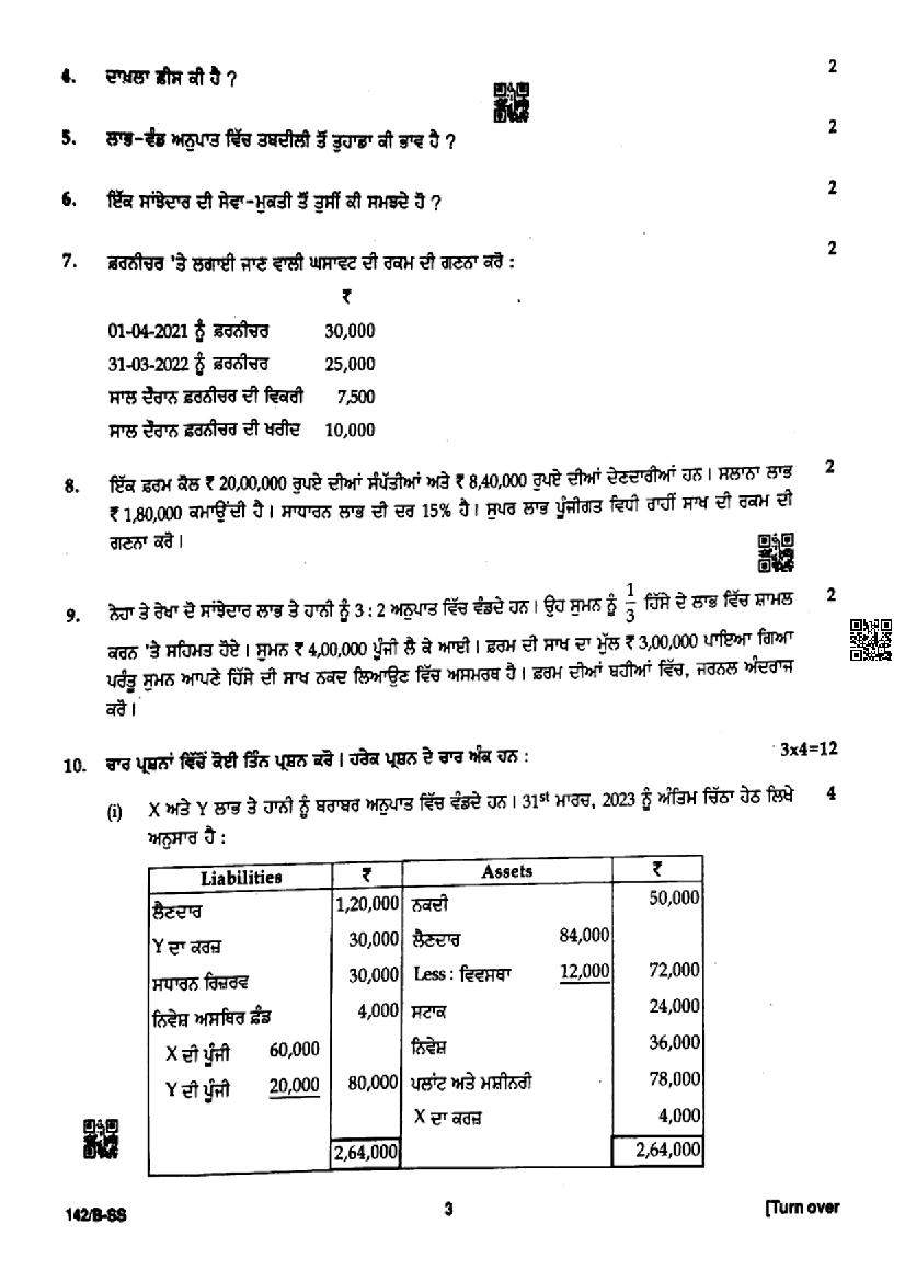 Punjab Board Class 12 Accountancy Question Paper 2024