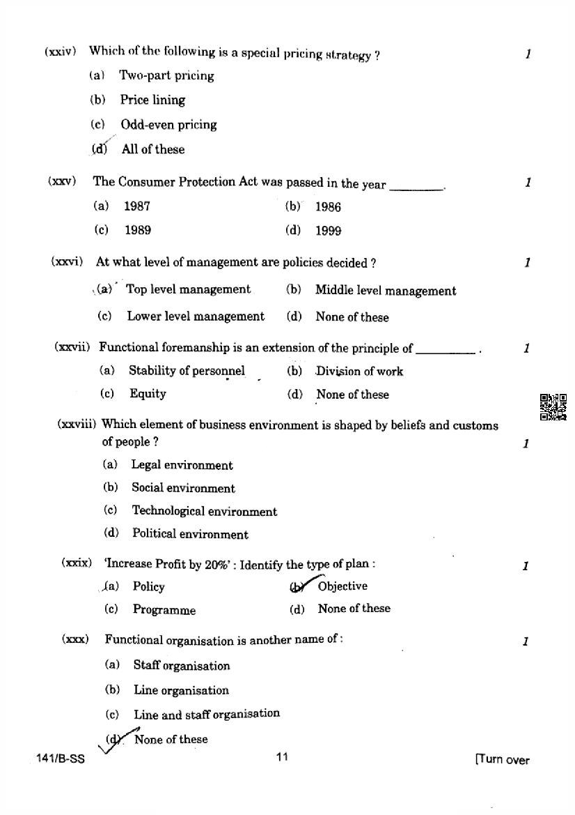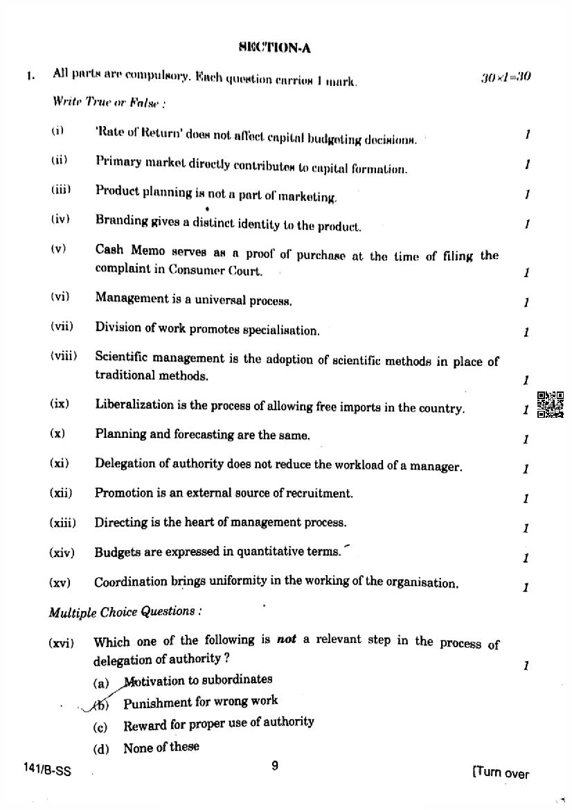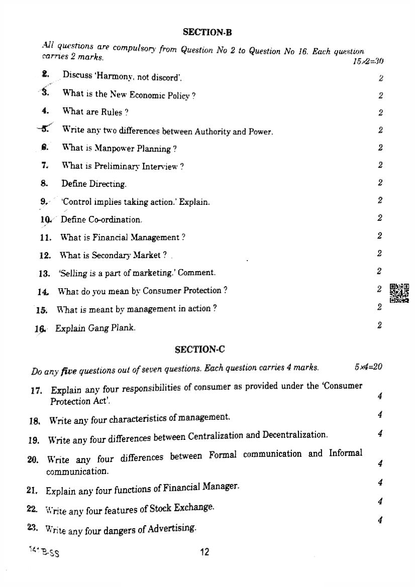 | Study Material Here | Punjab Board Previous Year Question Paper of Class 12 Business Studies |
