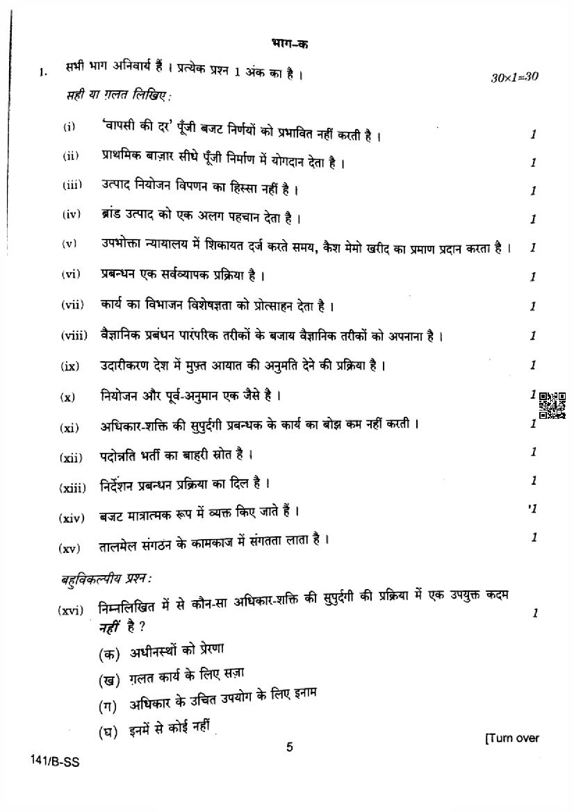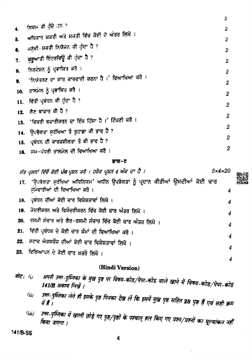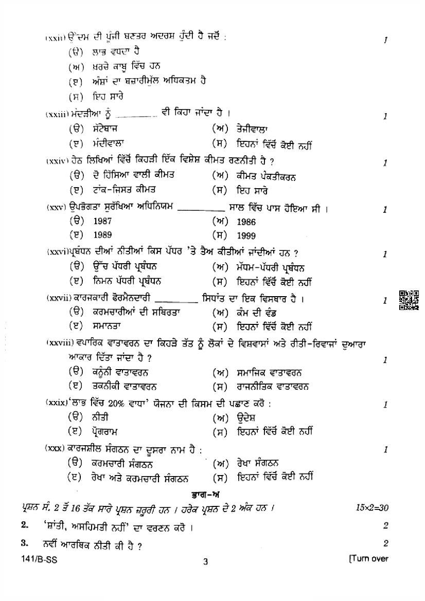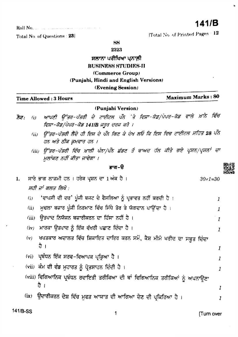 Punjab Board Class 12 Question Paper 2024 Business Studies View Download