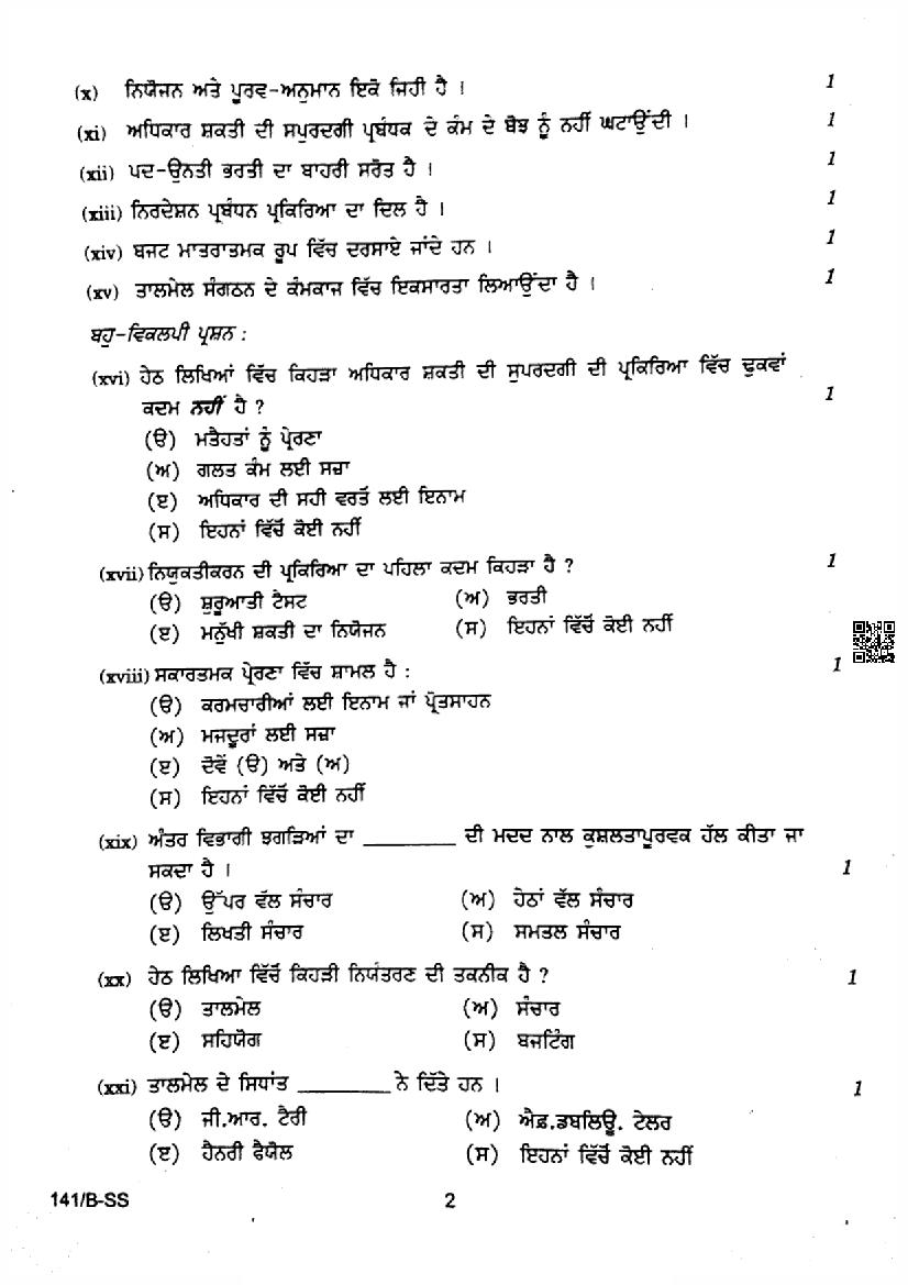 Punjab Board Class 12 Business Studies Question Paper 2024 PDF