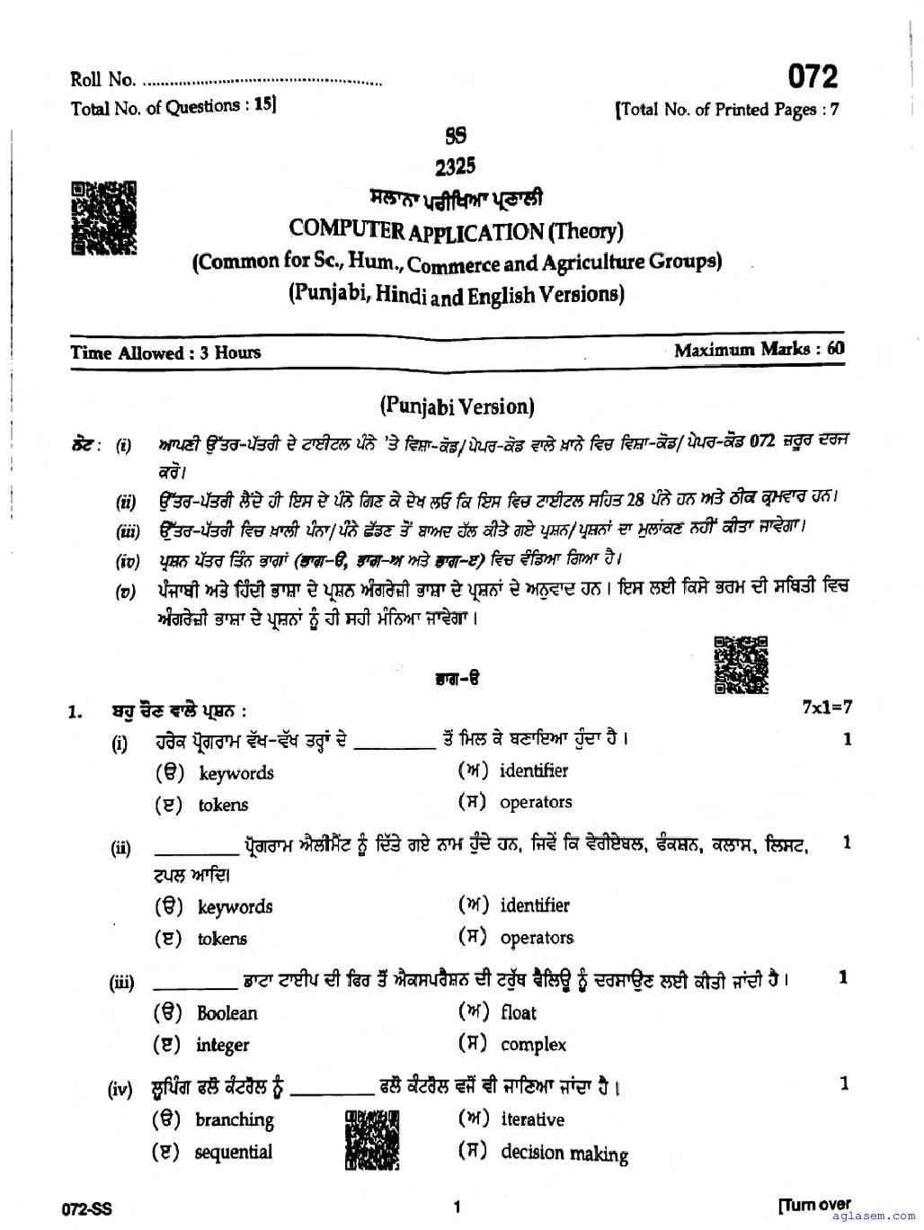 Punjab Board Class 12 Computer Application Question Paper 2026 is now available following the annual exams. You can download the PBSE Class 12 Computer Application Previous Year Question Paper PDF from Aglasem to significantly enhance your preparation for the upcoming paper. This invaluable document includes actual questions that were asked in the previous year’s Computer Application exam, and the PBSE Class 12 Question Paper for the Computer Application subject will assist you in grasping the exam’s difficulty level and the types of questions commonly encountered. Make sure to utilize these resources effectively to improve your exam performance. Understanding these materials will not only help you familiarize yourself with the format but also build your confidence leading up to the exam date.