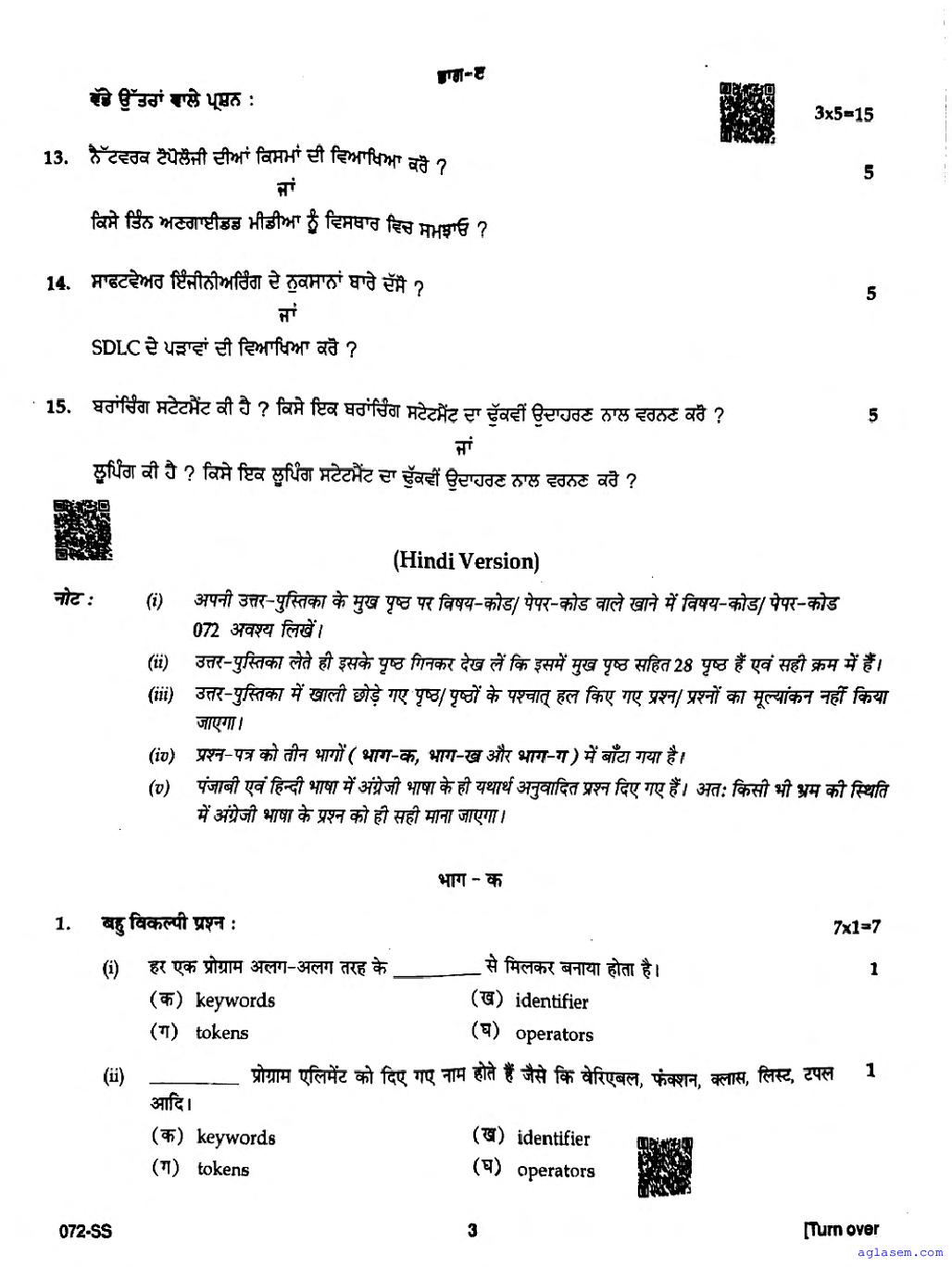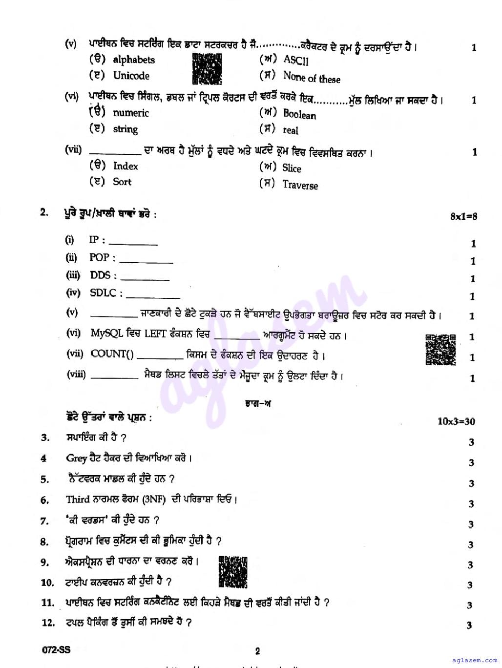 | Study Material Here | Punjab Board Previous Year Question Paper of Class 12 Computer Application |