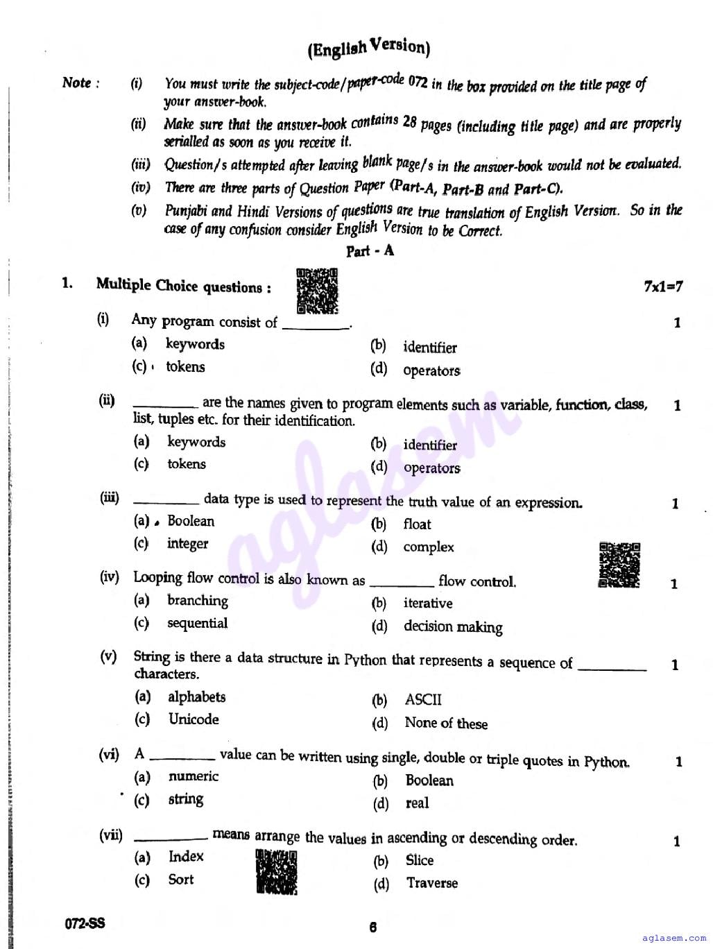 The PSEB Previous Year Question Paper for class 12th Computer Application examination is as follows. This resource is essential for students to familiarize themselves with the exam format and types of questions. Utilizing these papers can significantly enhance preparation and boost confidence before the exam day.