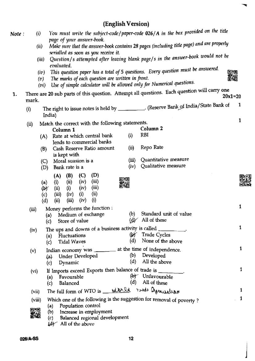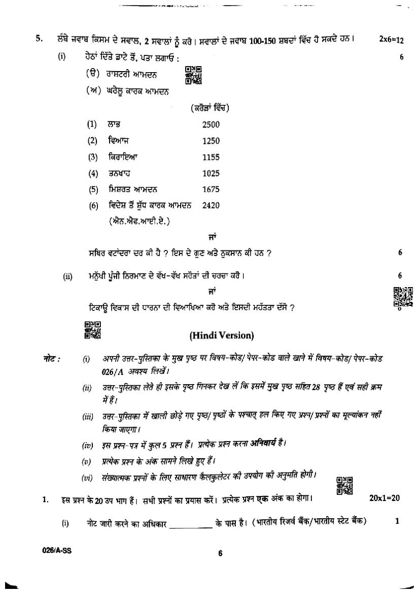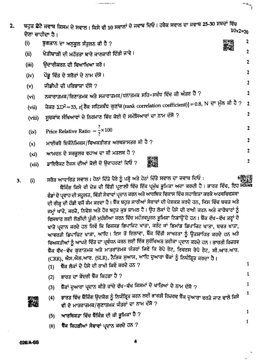 | Study Material Here | Punjab Board Previous Year Question Paper of Class 12 Economics |