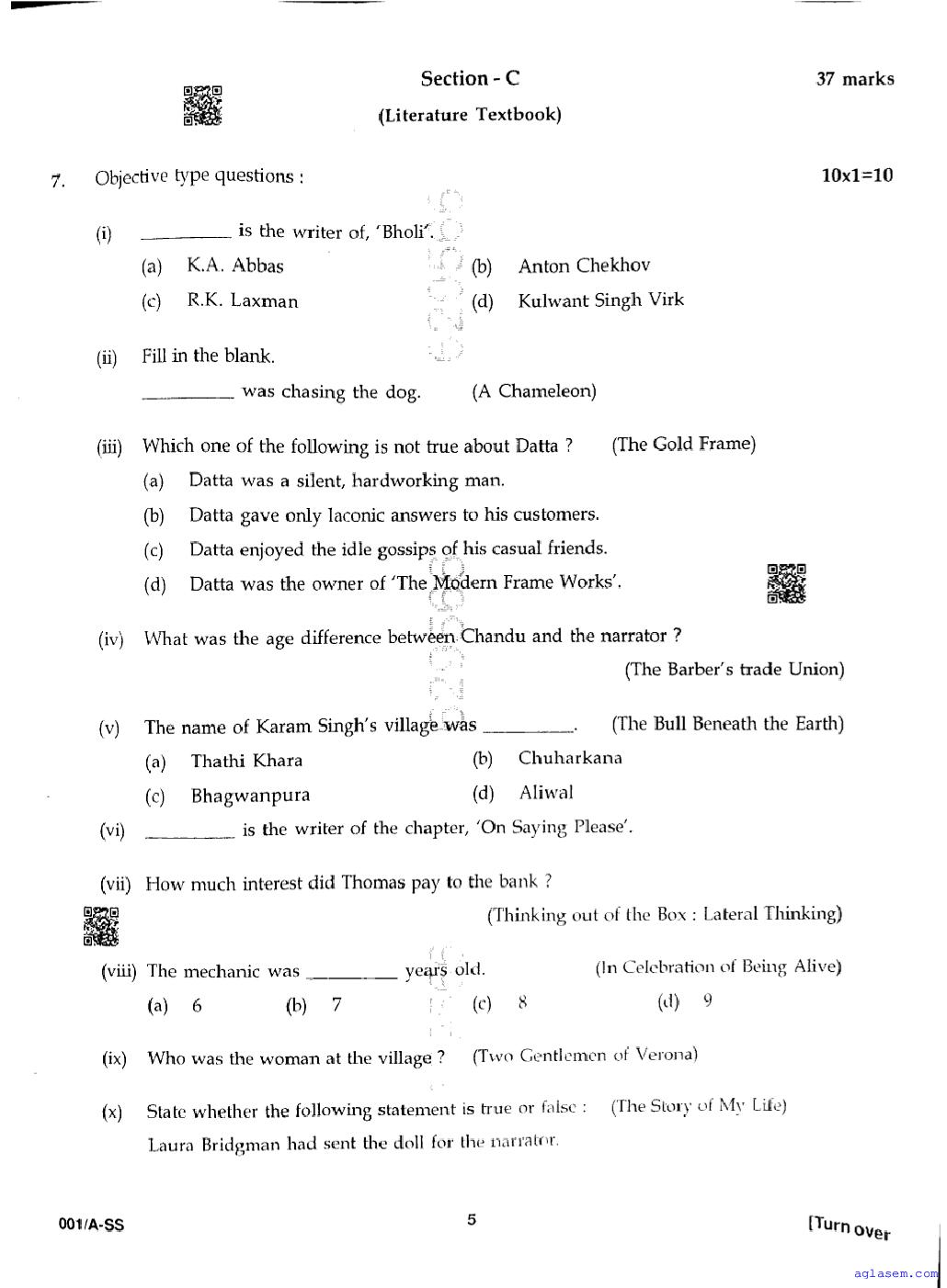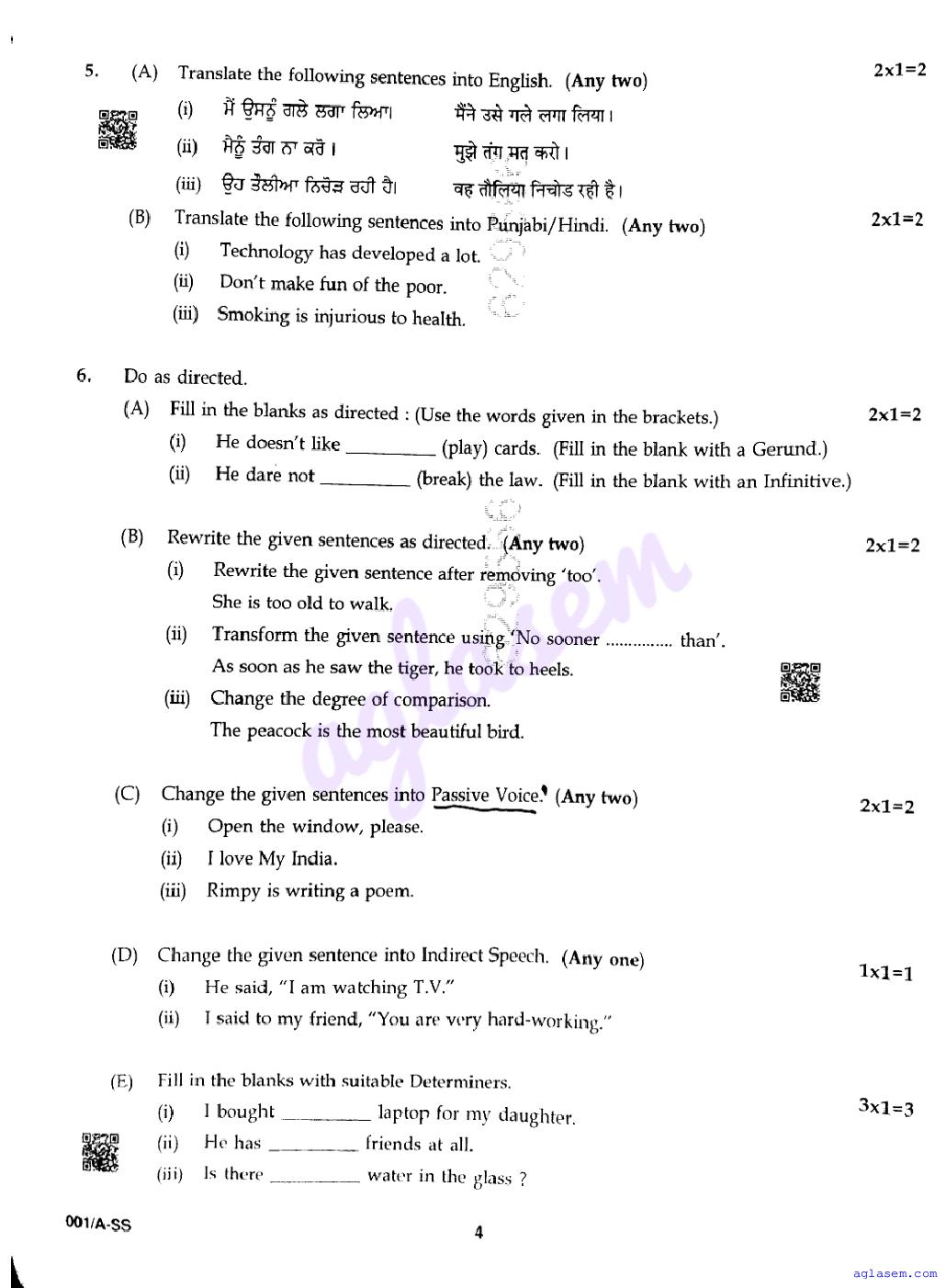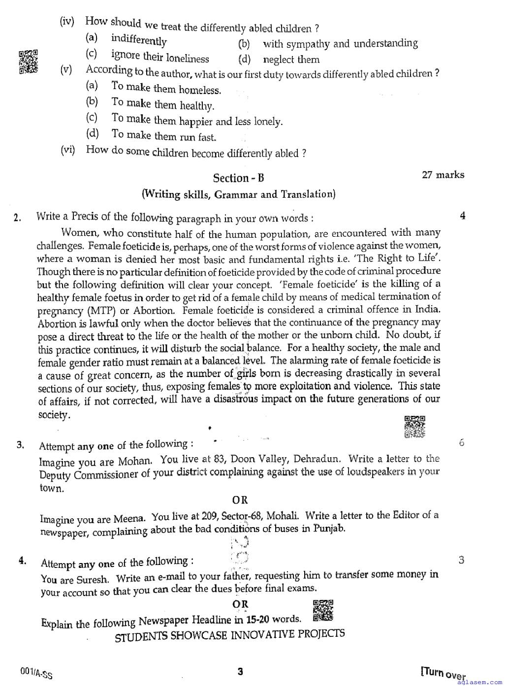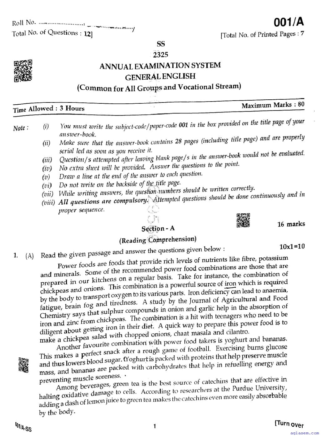 | Study Material Here | Punjab Board Previous Year Question Paper of Class 12 English |