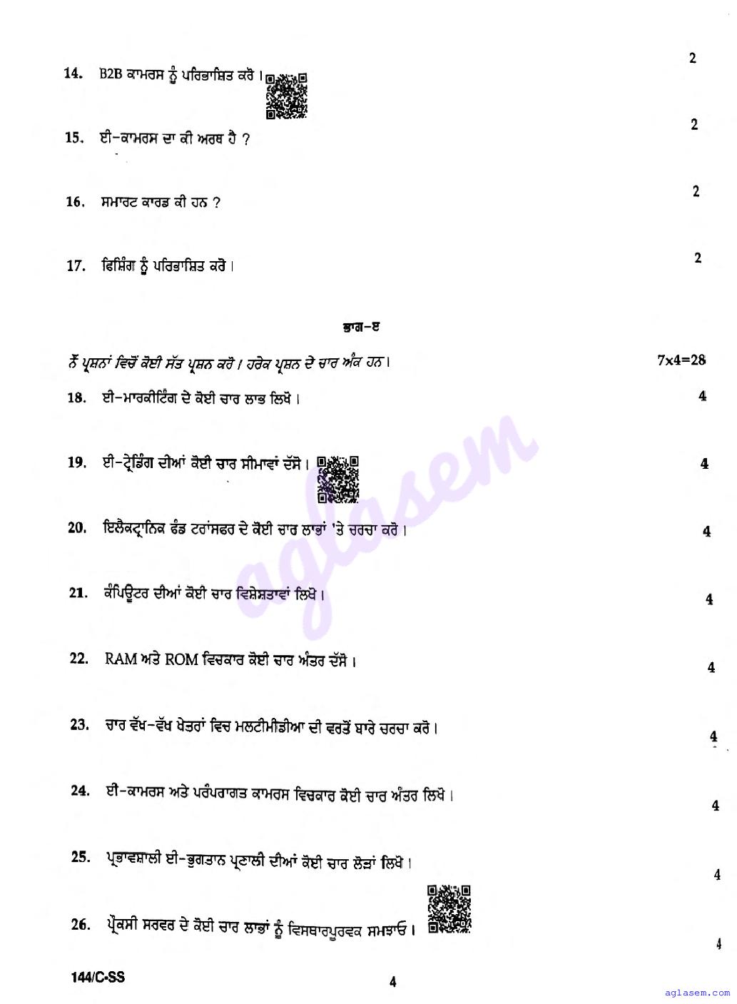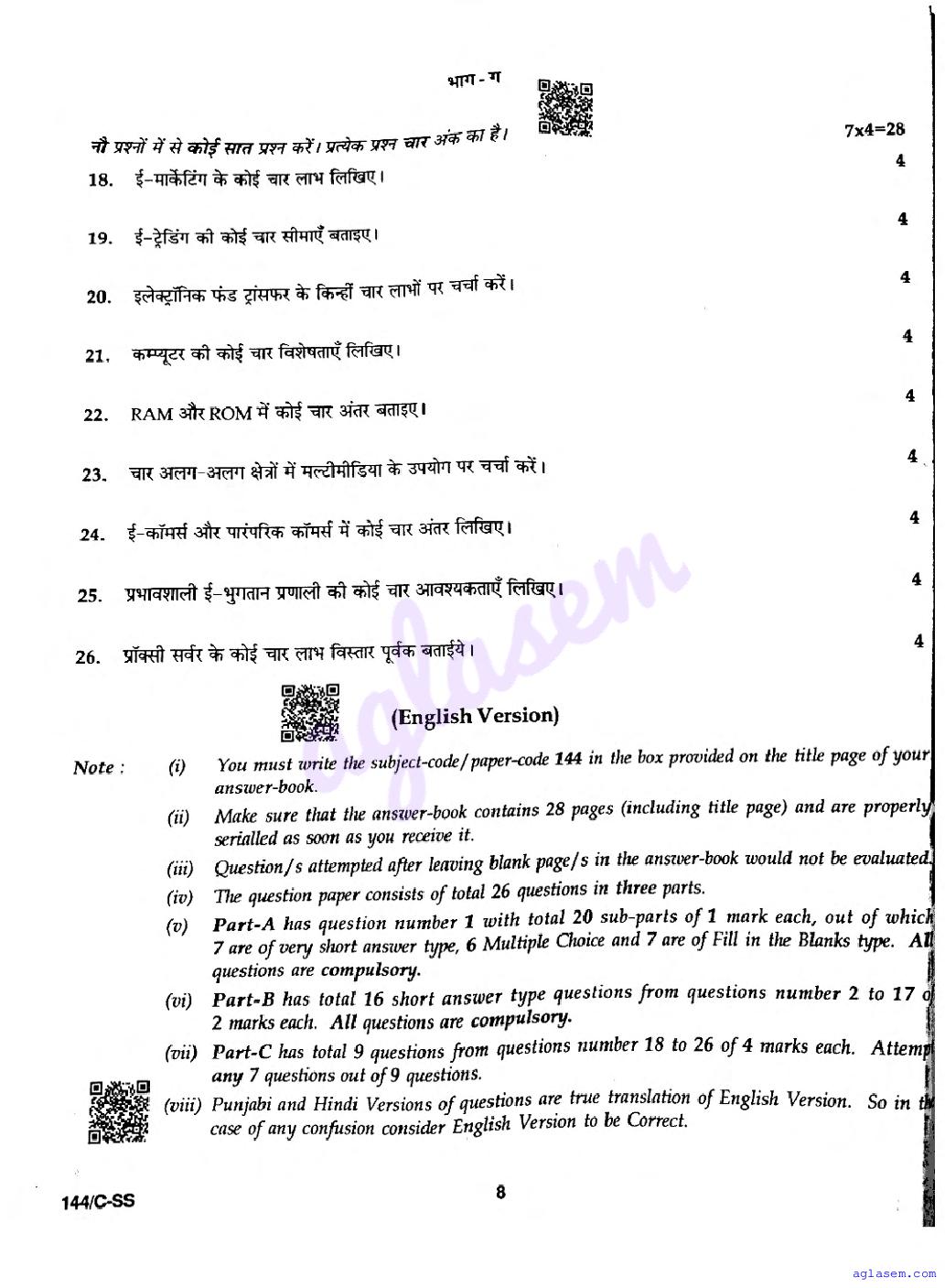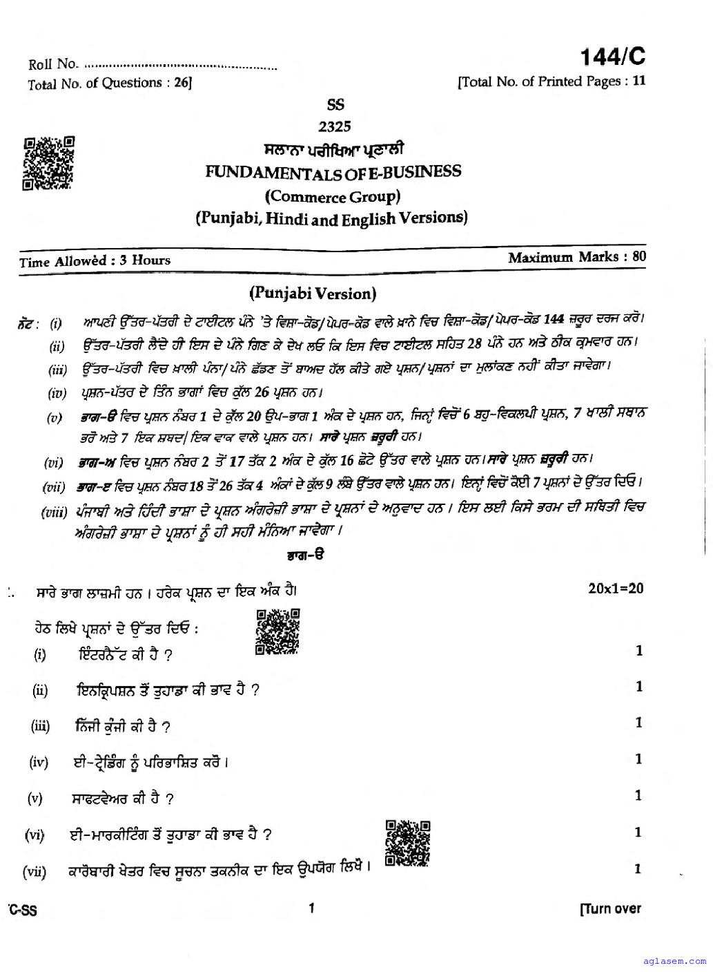 | Study Material Here | Punjab Board Previous Year Question Paper of Class 12 Fundamentals of E-Business |