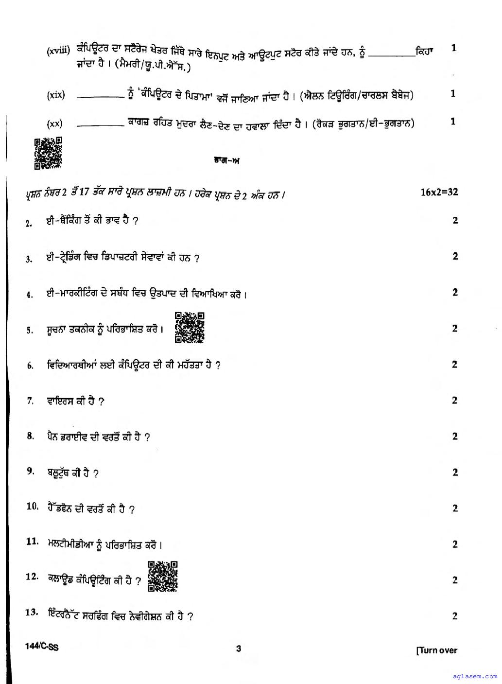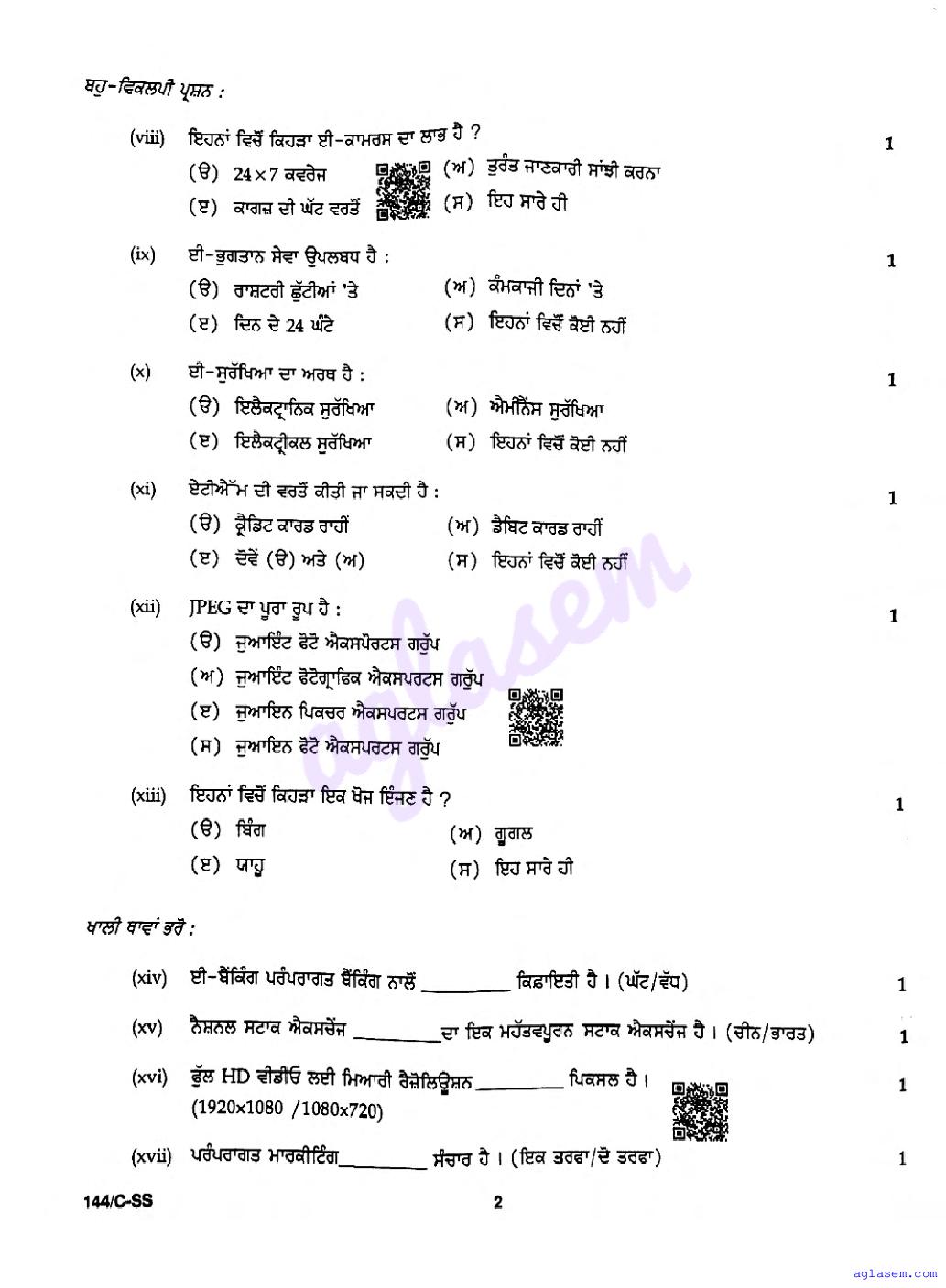 Punjab Board Class 12 Fundamentals of E-Business Question Paper 2026 is now available following the annual exams. You can download the PBSE Class 12 Fundamentals of E-Business Previous Year Question Paper PDF from Aglasem to significantly enhance your preparation for the upcoming paper. This invaluable document includes actual questions that were asked in the previous year’s Fundamentals of E-Business exam, and the PBSE Class 12 Question Paper for the Fundamentals of E-Business subject will assist you in grasping the exam’s difficulty level and the types of questions commonly encountered. Make sure to utilize these resources effectively to improve your exam performance. Understanding these materials will not only help you familiarize yourself with the format but also build your confidence leading up to the exam date.