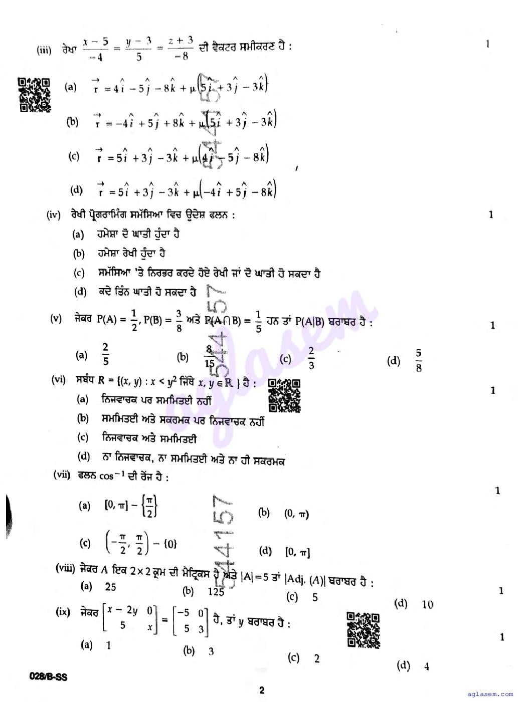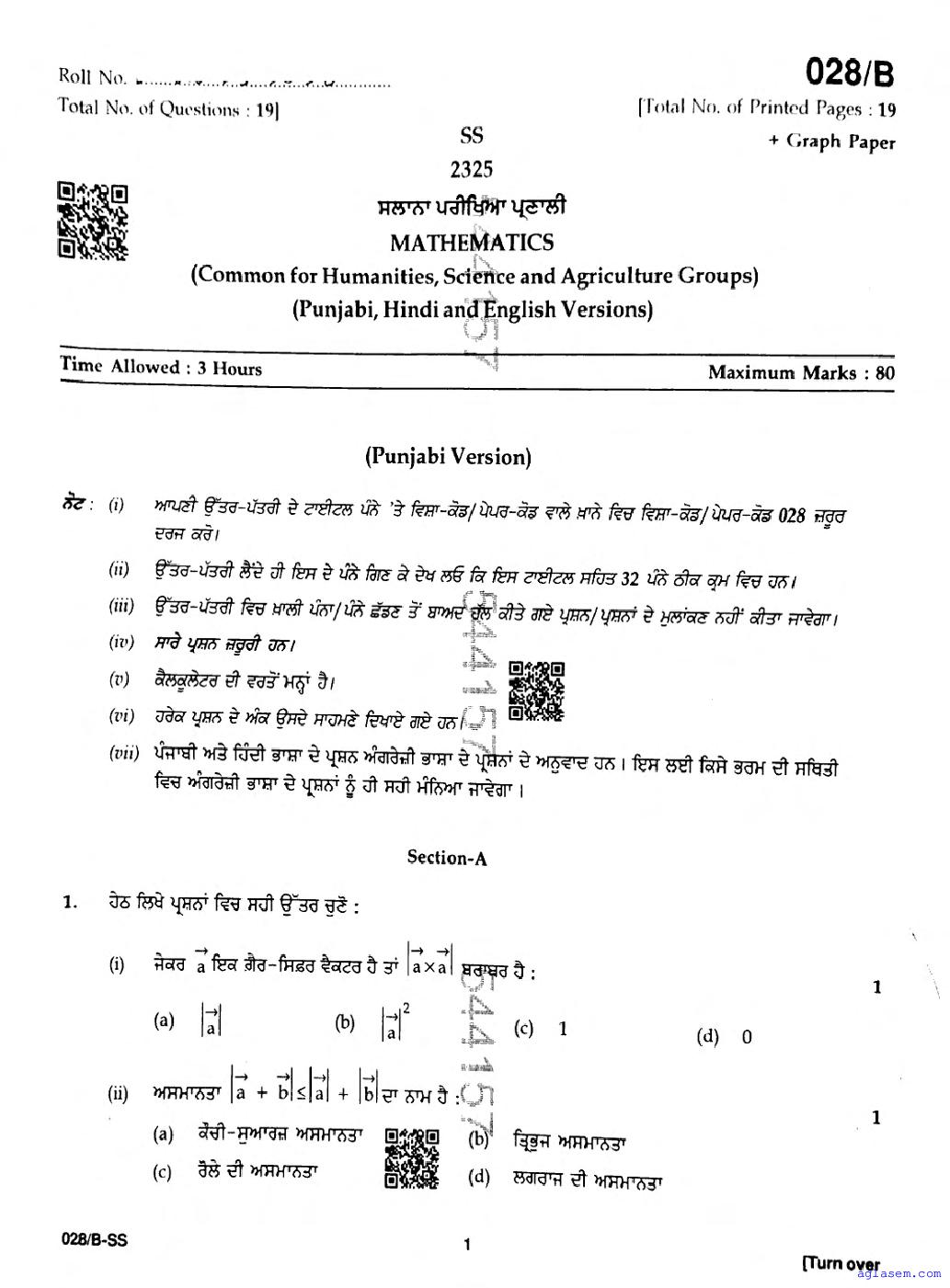| Study Material Here | Punjab Board Previous Year Question Paper of Class 12 Mathematics |