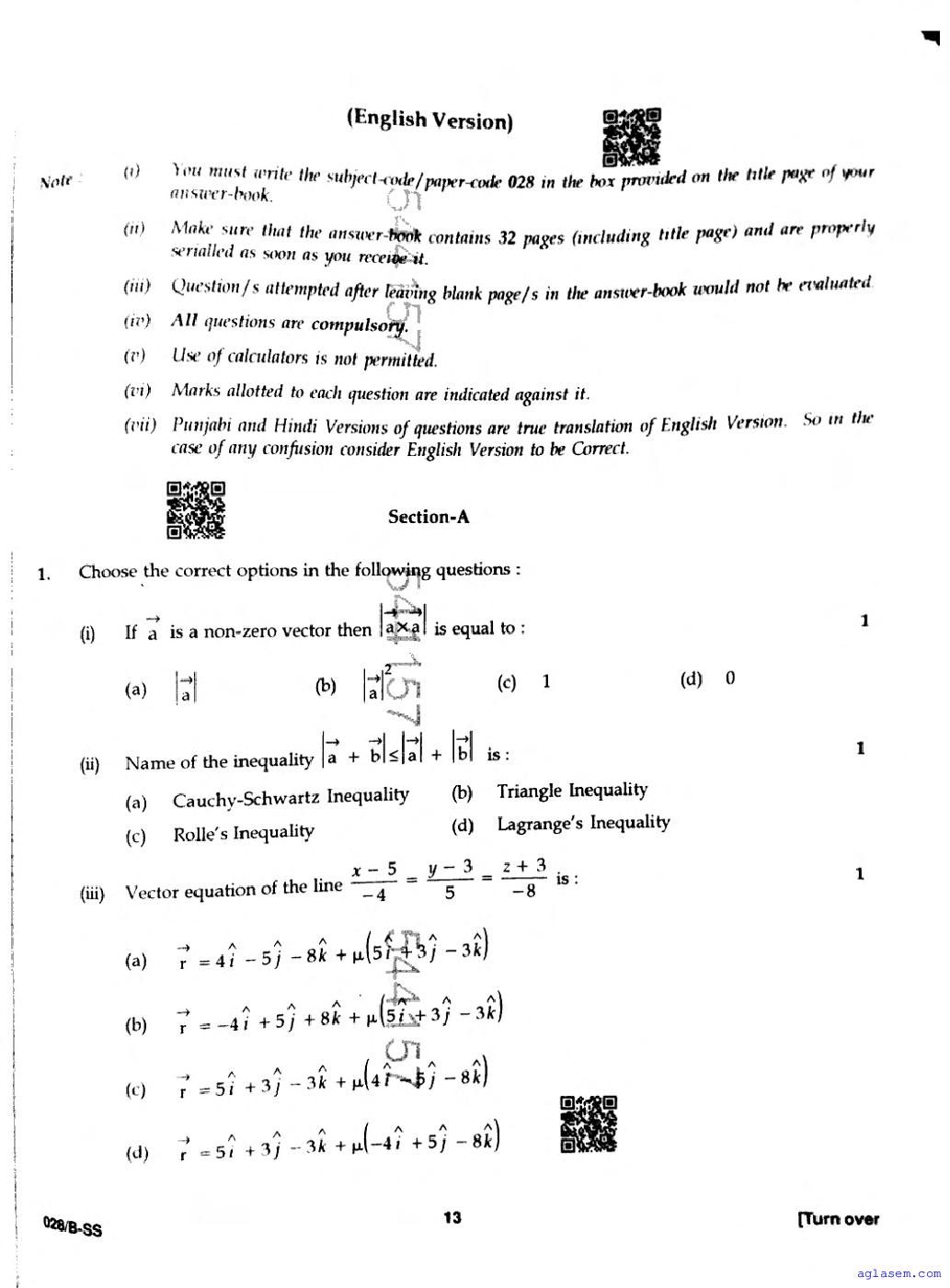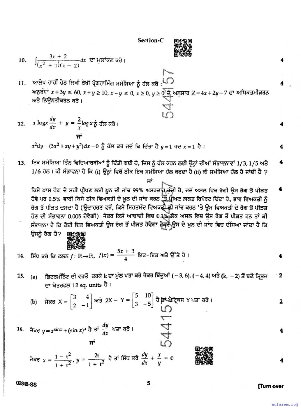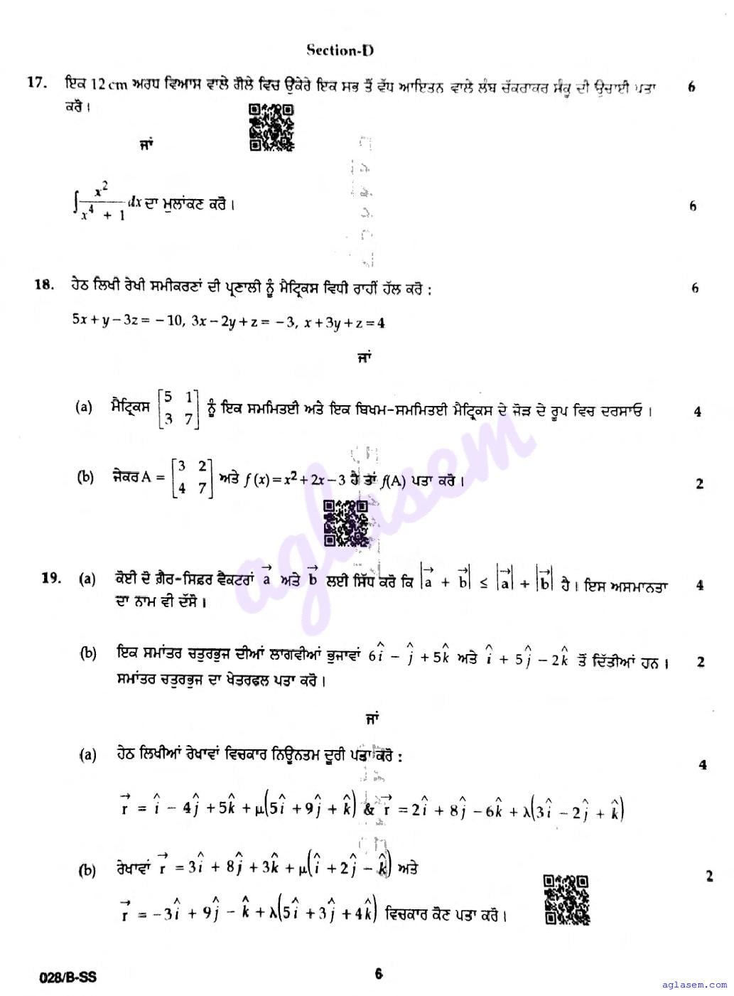 Punjab Board Class 12 Mathematics Question Paper 2026 is now available following the annual exams. You can download the PBSE Class 12 Mathematics Previous Year Question Paper PDF from Aglasem to significantly enhance your preparation for the upcoming paper. This invaluable document includes actual questions that were asked in the previous year’s Mathematics exam, and the PBSE Class 12 Question Paper for the Mathematics subject will assist you in grasping the exam’s difficulty level and the types of questions commonly encountered. Make sure to utilize these resources effectively to improve your exam performance. Understanding these materials will not only help you familiarize yourself with the format but also build your confidence leading up to the exam date.