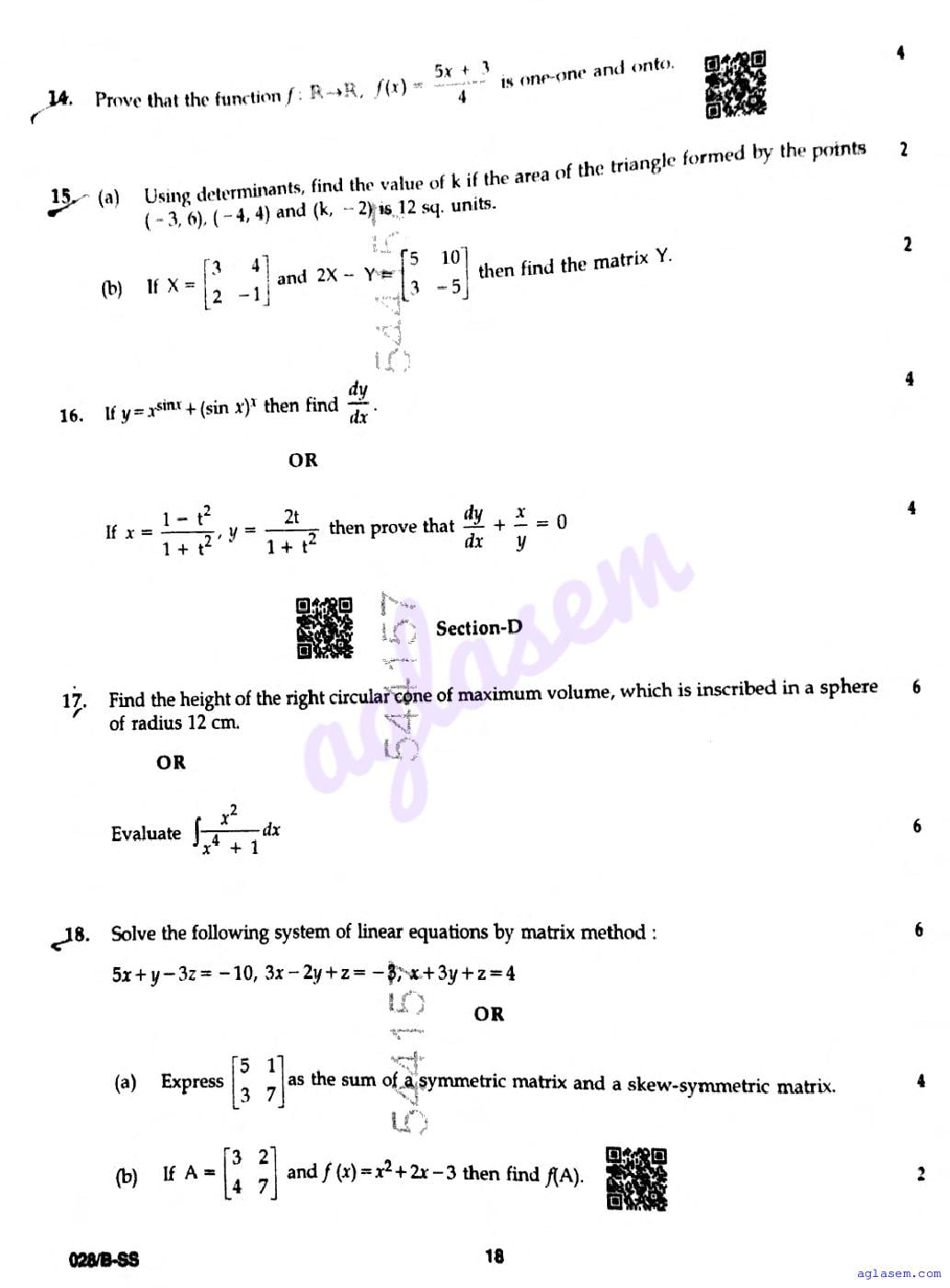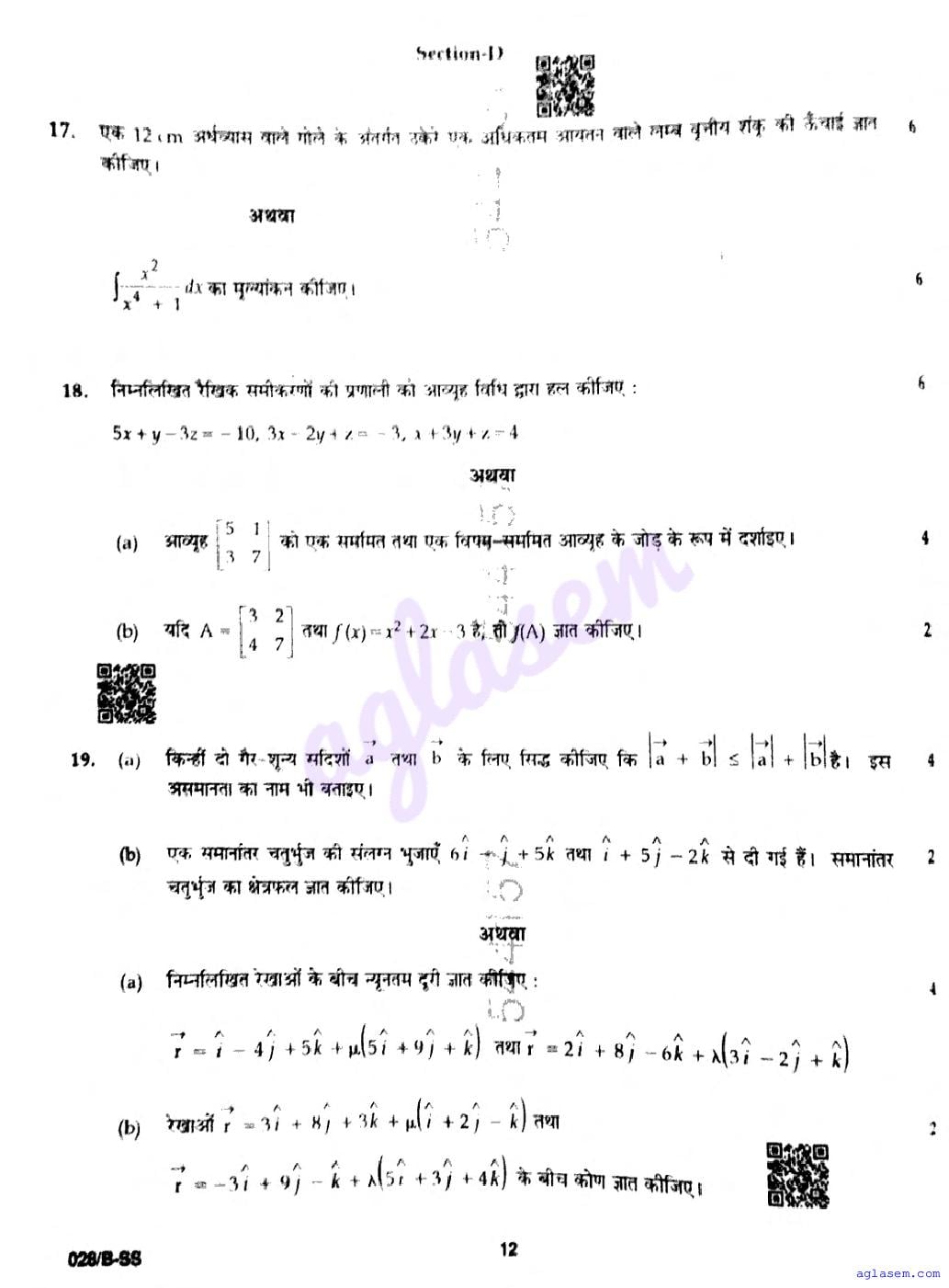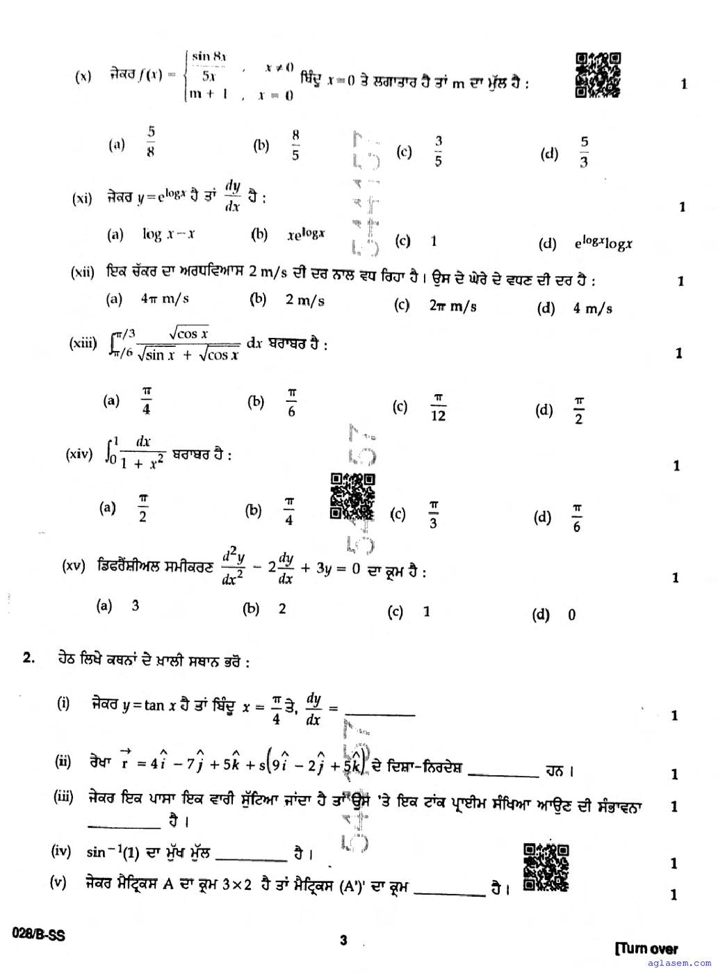 Punjab Board Class 12 Mathematics Question Paper 2026 is now available following the annual exams. You can download the PBSE Class 12 Mathematics Previous Year Question Paper PDF from Aglasem to significantly enhance your preparation for the upcoming paper. This invaluable document includes actual questions that were asked in the previous year’s Mathematics exam, and the PBSE Class 12 Question Paper for the Mathematics subject will assist you in grasping the exam’s difficulty level and the types of questions commonly encountered. Make sure to utilize these resources effectively to improve your exam performance. Understanding these materials will not only help you familiarize yourself with the format but also build your confidence leading up to the exam date.