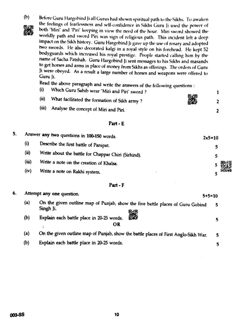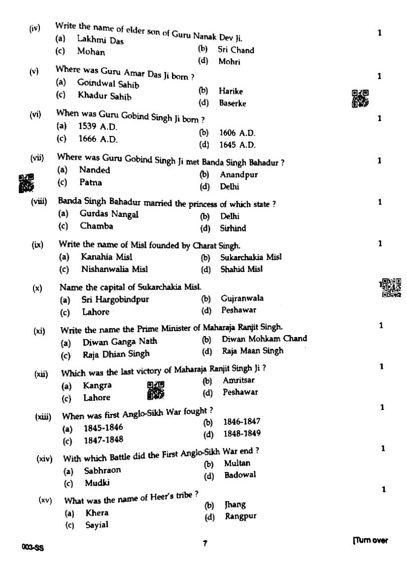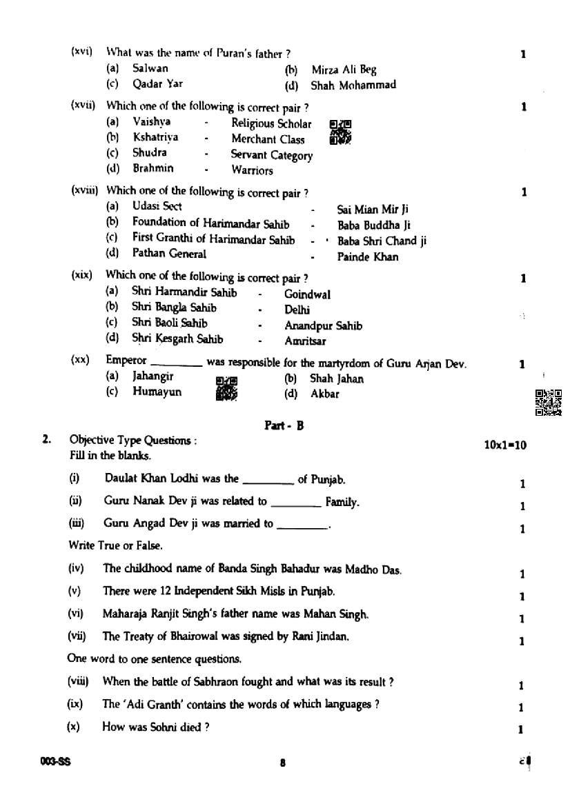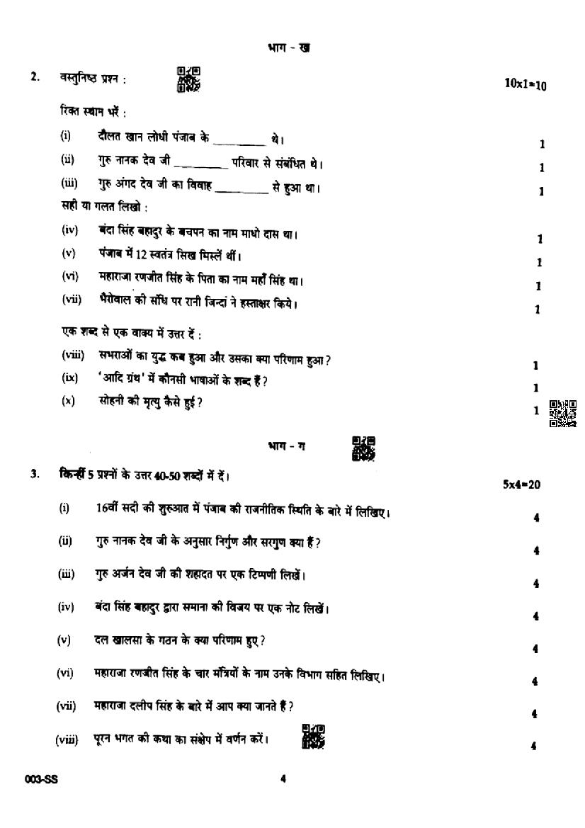| Study Material Here | Punjab Board Previous Year Question Paper of Class 12 Punjabi History and Culture |