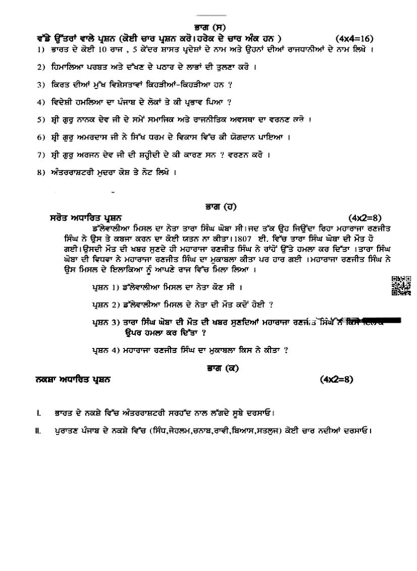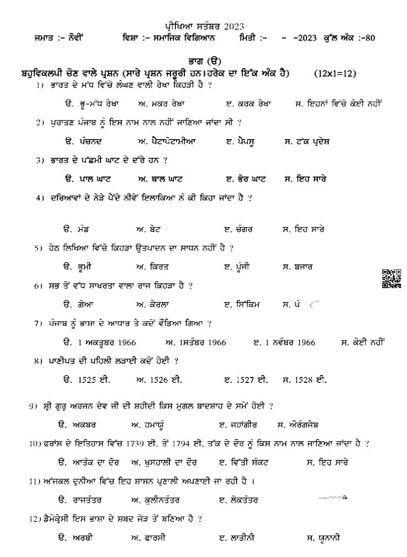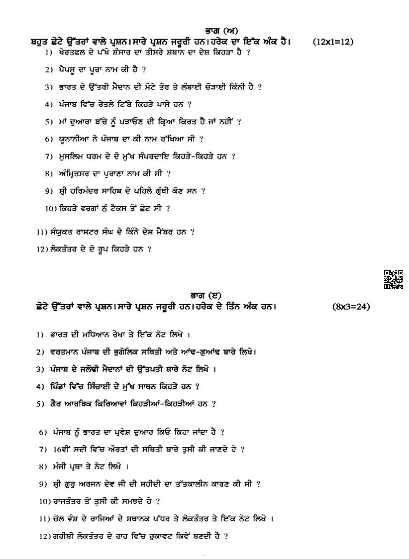 | Study Material Here | Punjab Board Previous Year Question Paper of Class 9 Social Science |