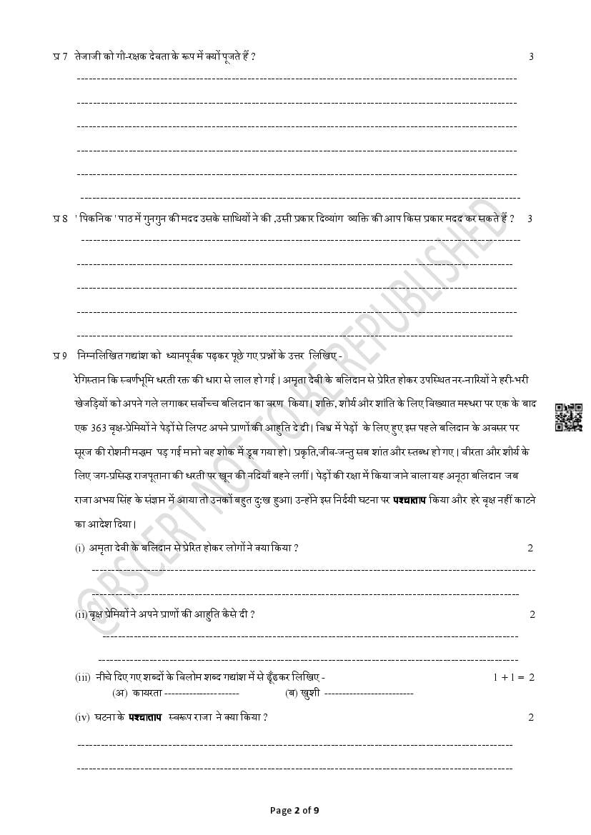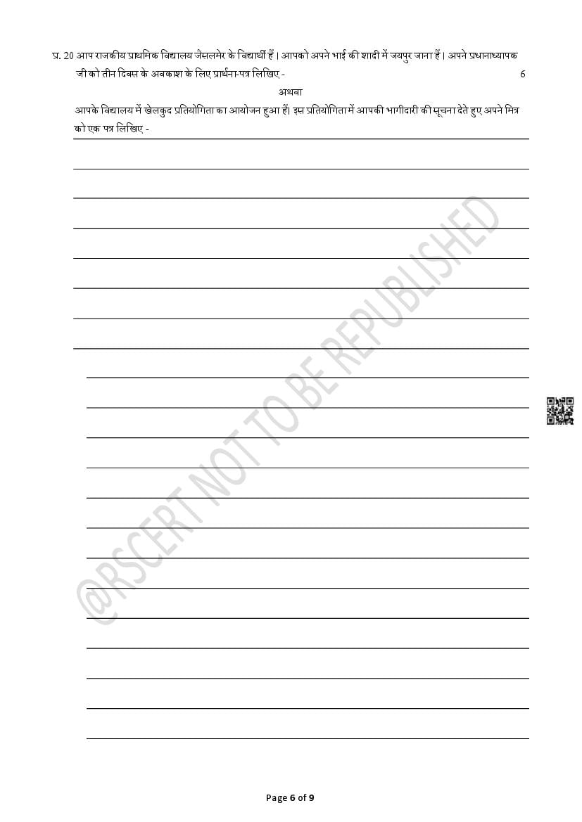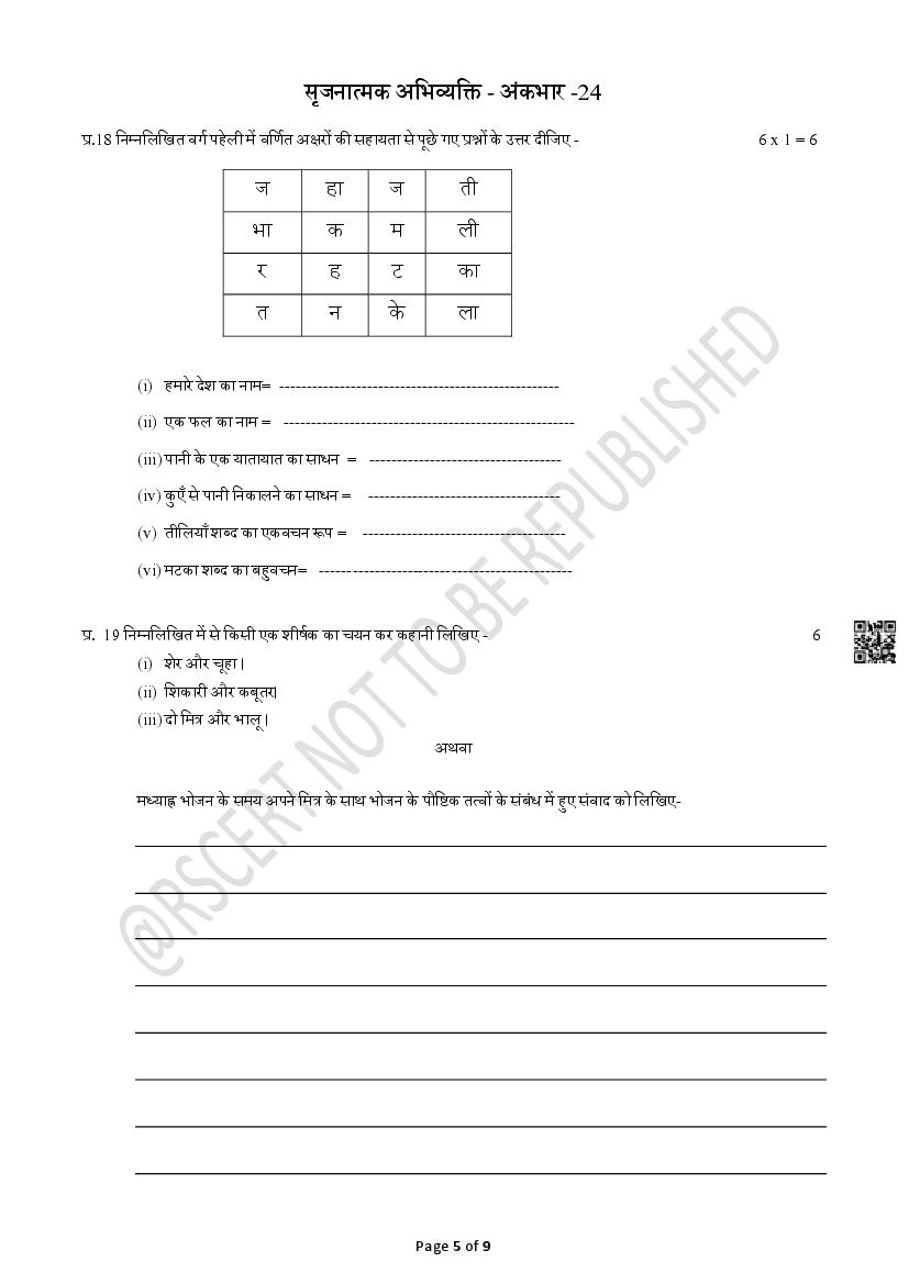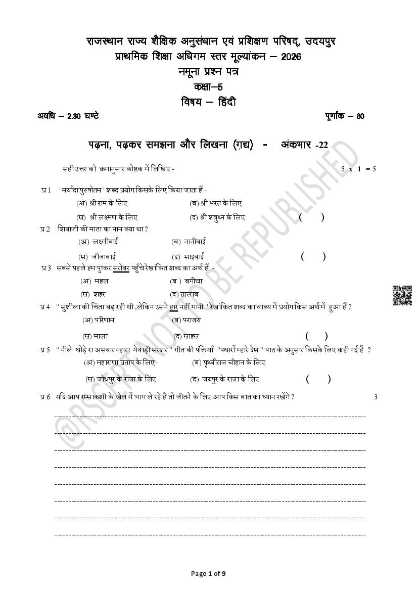 The Rajasthan Board model paper for class 5 Hindi is as follows.