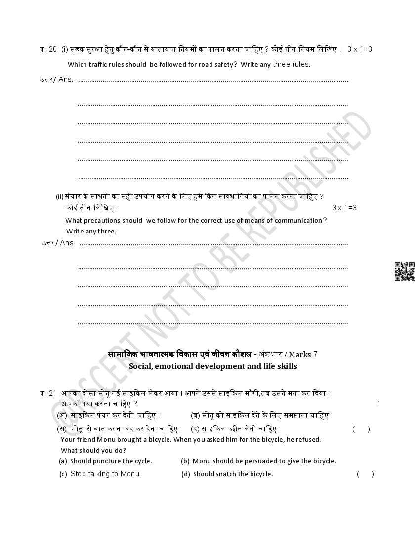 - Rajasthan Board Class 3rd Model Question Papers