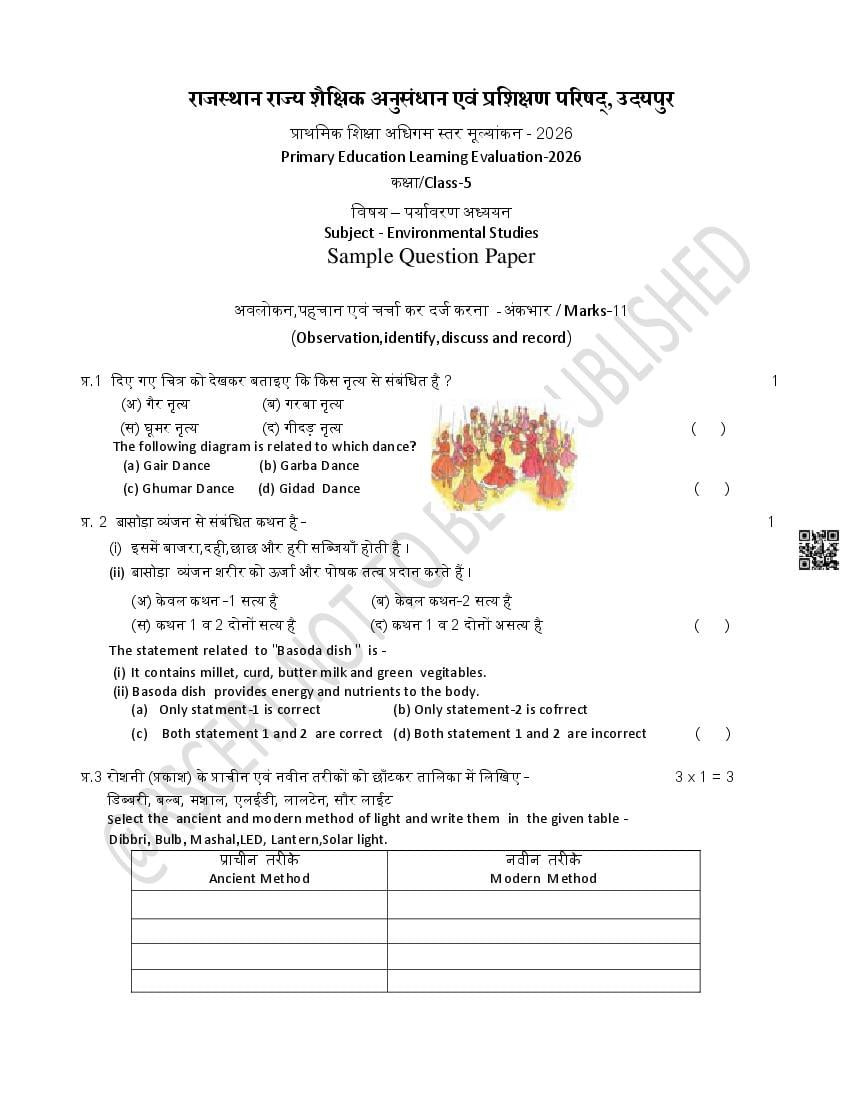 Rajasthan Board 5th EVS Model Paper 2026 – An Overview