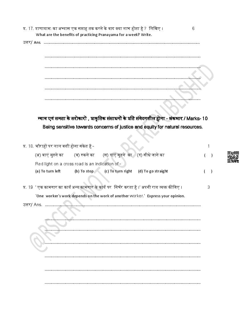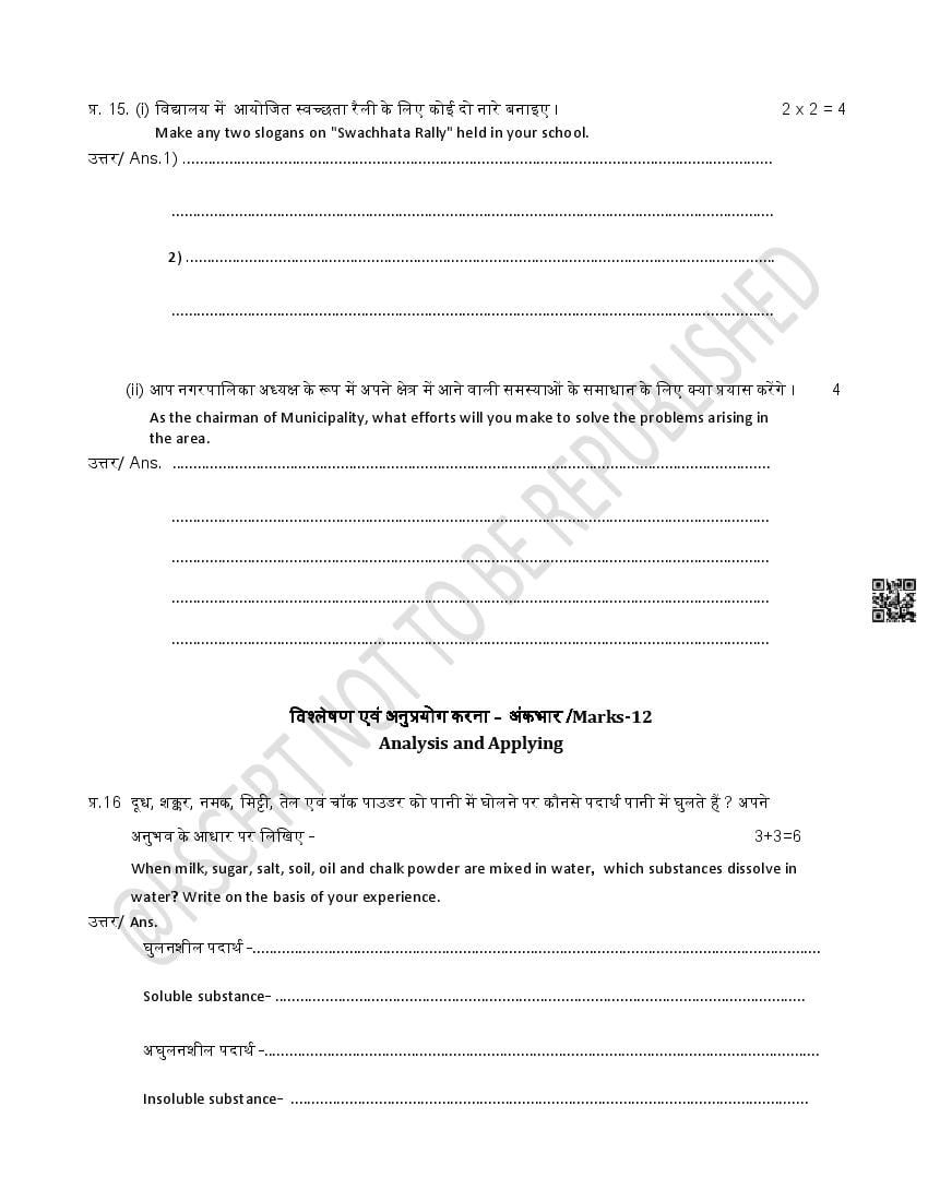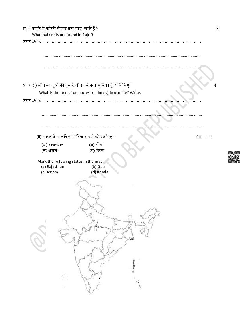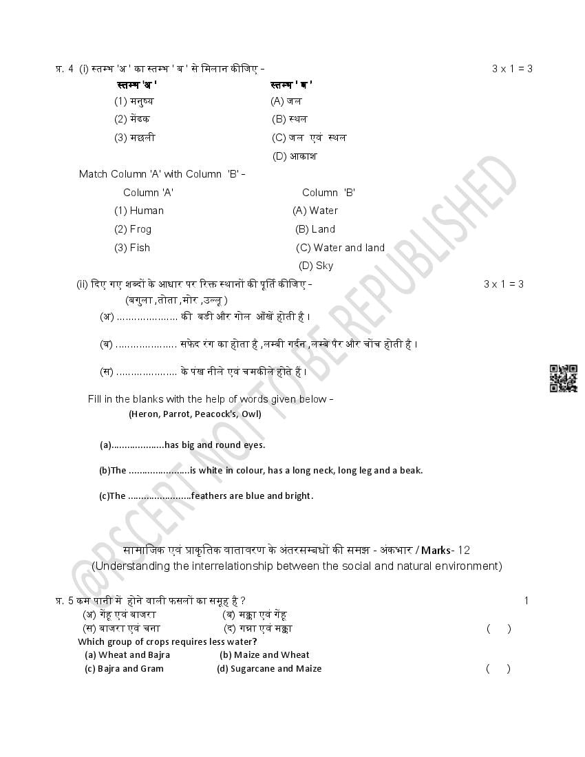 The Rajasthan Board model paper for class 5 EVS is as follows.