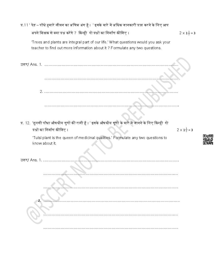 - RBSE Class 5 Sample Paper Hindi