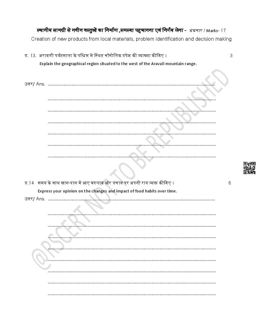 - Rajasthan Board Class 6th Model Question Papers