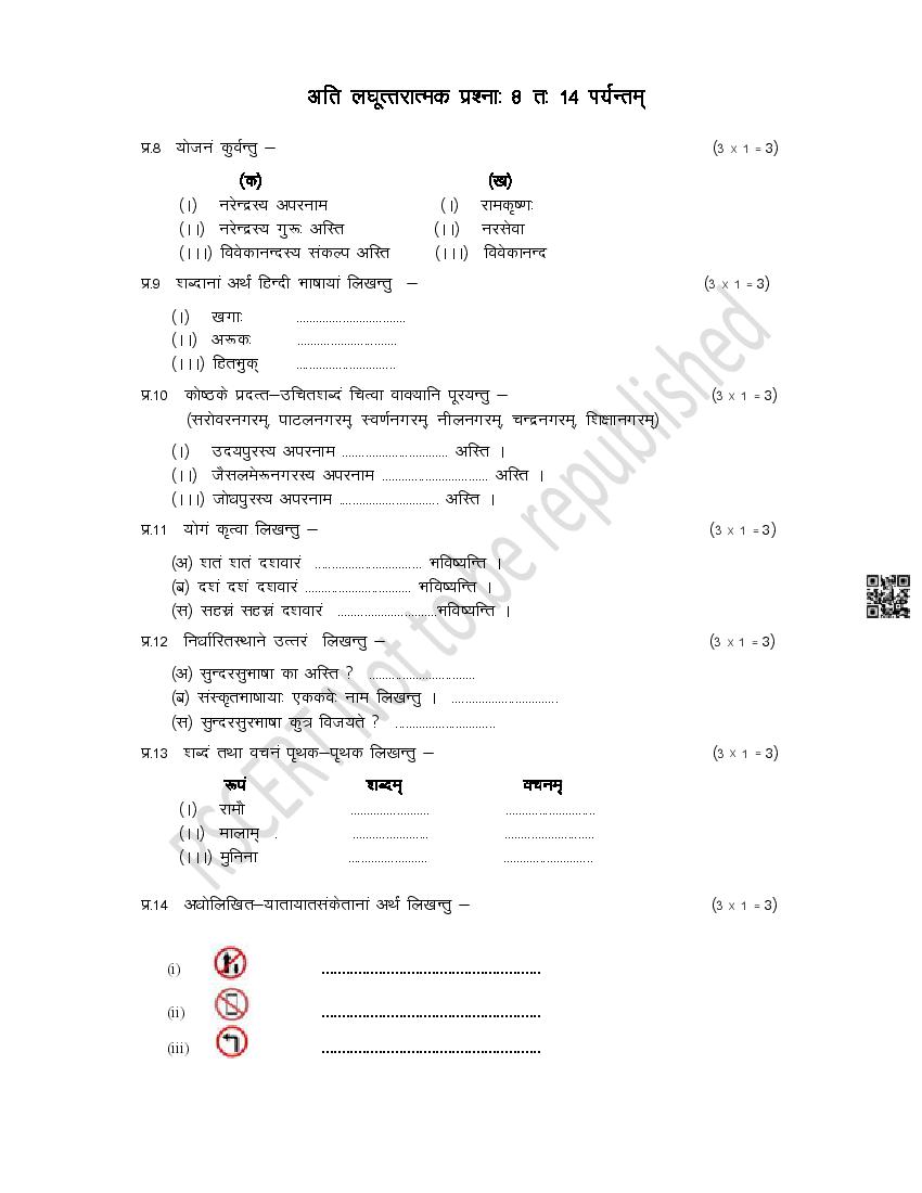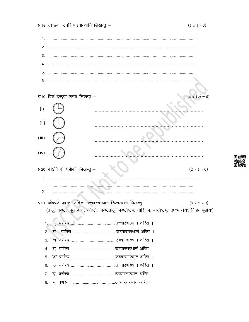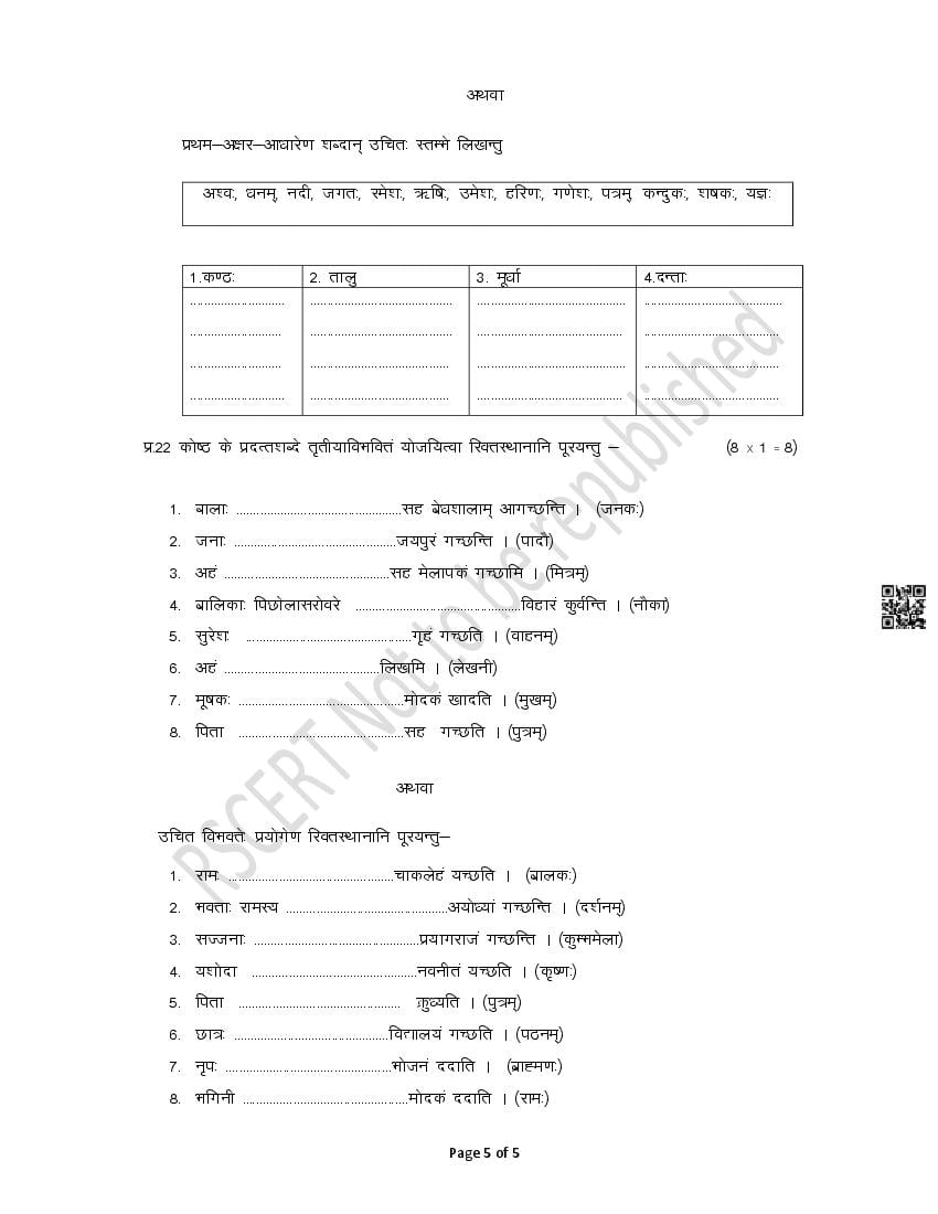The Rajasthan Board model paper for class 5 Sanskrit is as follows.