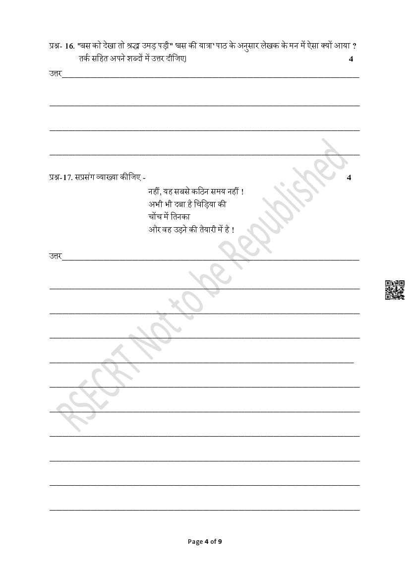 While you can solve the Hindi sample paper with the Rajasthan Board Hindi books and RBSE solutions for class 8. Nevertheless you may want RBSE Class 8 Hindi Question Paper with Answers. You can therefore download Rajasthan Board Class 8 Previous Year Question Papers as PDF to know exactly which questions were asked. The RBSE Previous Year Question papers Class 8 Hindi also help you score more in exam.